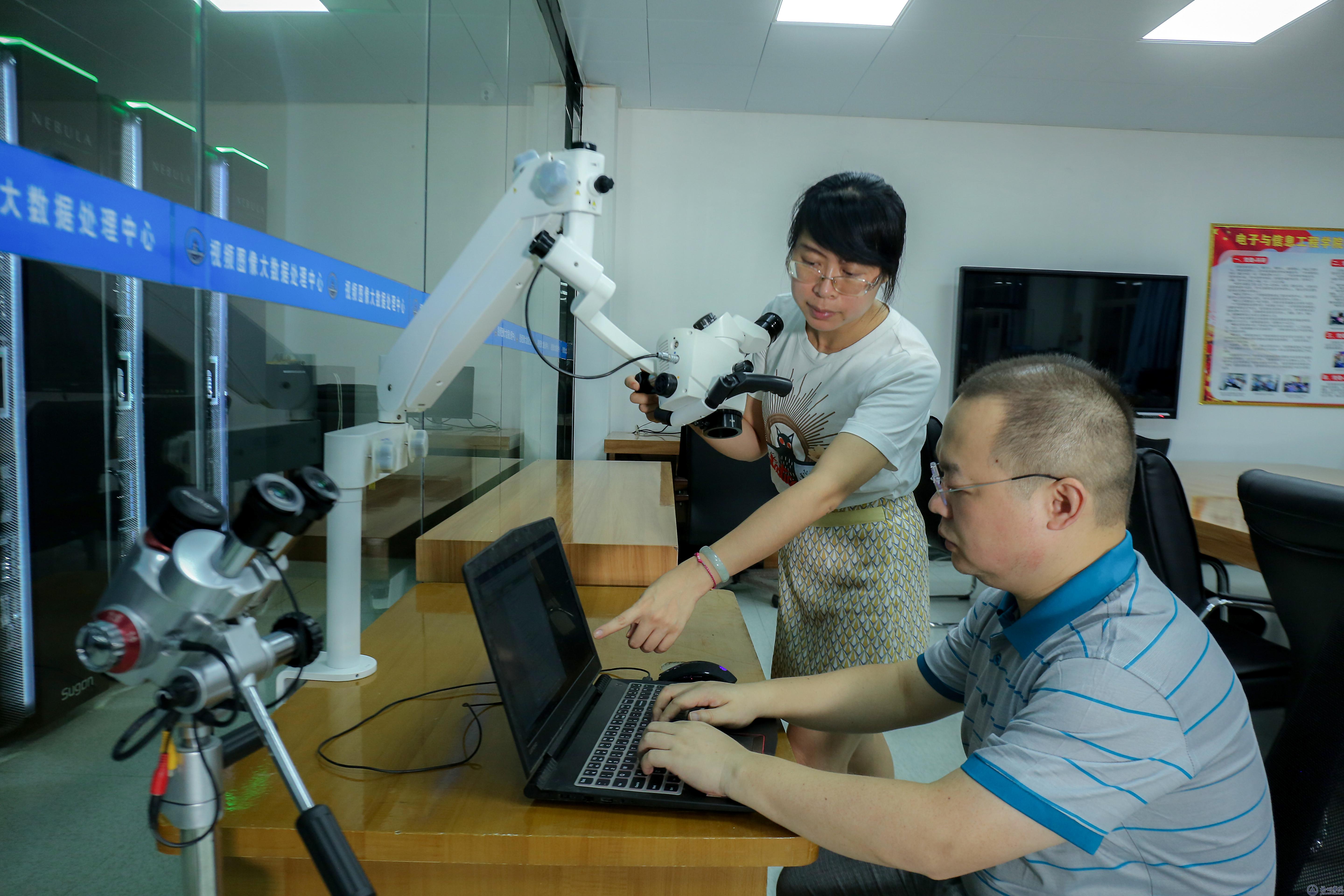 贺杰、郭慧教授对显微视频进行传输调试