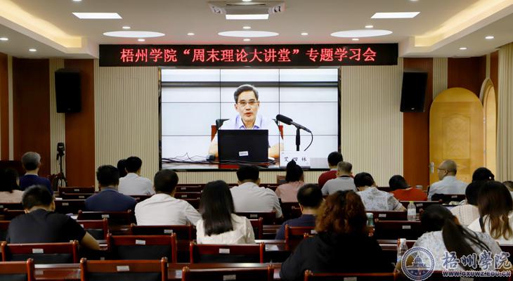 9月4日下午,我校在明理楼七楼视频会议室组织收看全国高校思想政治理论课教师“周末理论大讲堂”学习活动封闭式网络直播。学校党委副书记曹迎,宣传部、学工部(处)、校团委等部门负责人,二级学院党委(党总支)书记和副书记,思政课专兼职教师、辅导员参加学习。