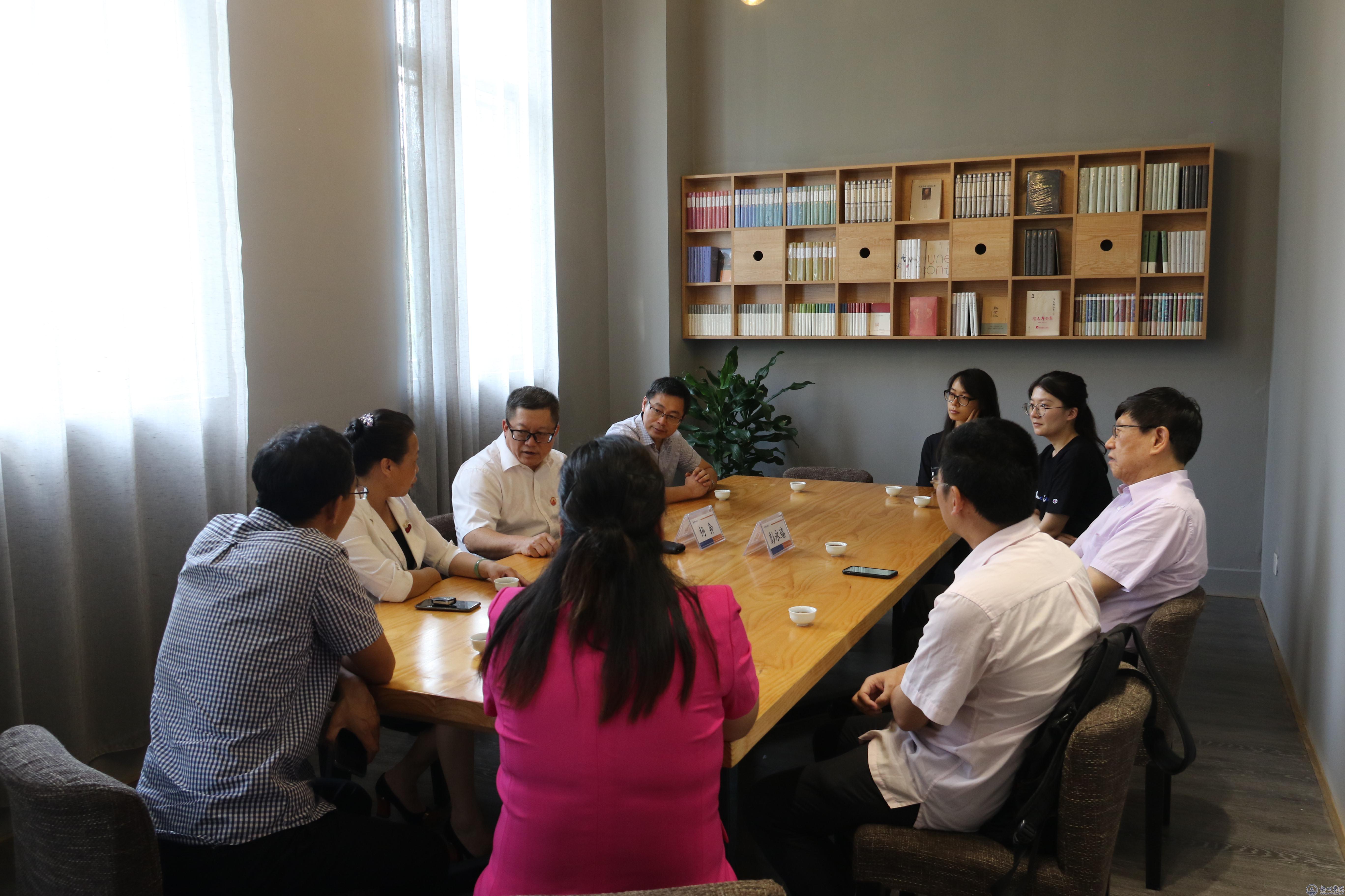 彭永臻院士一行在独秀书房和杨奔校长进行会谈,杨奔围绕学校的办学定位、师资队伍结构以及办学设施等方面对我校的基本情况进行介绍,双方围绕学校的学科发展、人才培养和科研服务地方等方面进行了交流和讨论。