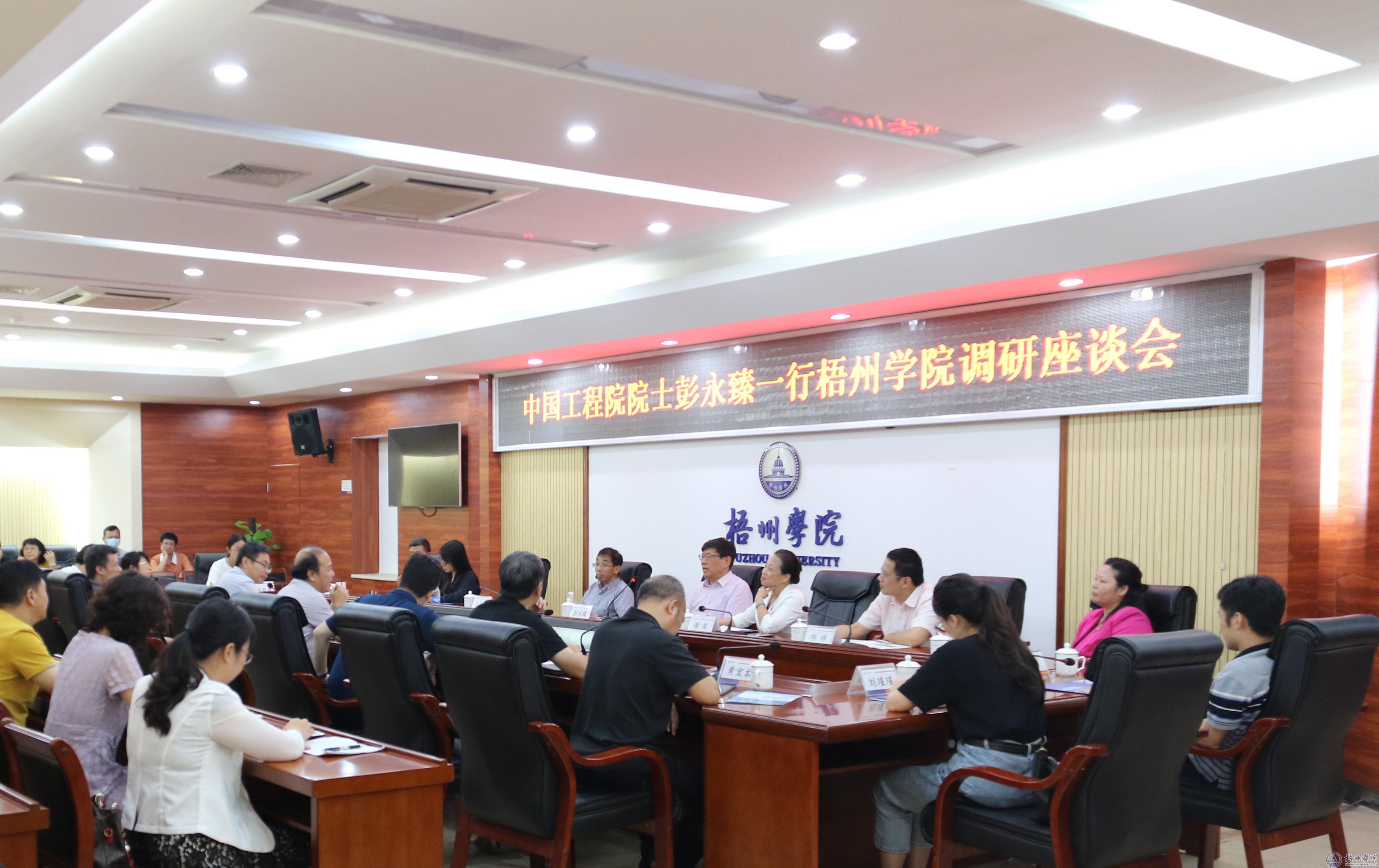 学术报告结束后,彭永臻院士一行与我校师生代表以及梧州市相关协会和企业代表在明理楼八楼第一会议室进行了座谈交流。玉振明副校长出席会议,座谈会由宾月景副校长主持。座谈会上,彭永臻院士对师生代表提出的问题进行了答复,指出了教学内容的设置和教材改革对学生培养的重要价值和意义。座谈会上,彭永臻院士还对专业建设、学生培养以及就业实习等方面进行了指导。梧州市科技局、科研处、机械与材料工程学院、化学工程与资源再利用学院、电子信息工程学院、大数据与软件工程学院、广西碧清源环保投资有限公司相关负责人和教师代表参加了本次座谈会。