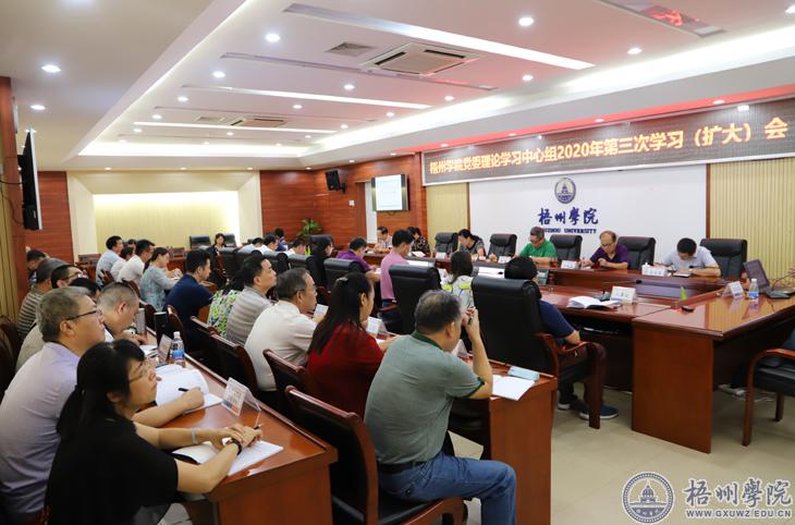 9月17日下午,我校党委理论学习中心组在明理楼第一会议室召开2020年第三次学习扩大会议,集中学习研讨《习近平谈治国理政》第三卷、习近平总书记在中央政治局第二十一次集体学习时重要讲话精神、习近平总书记关于力戒形式主义官僚主义重要论述和自治区党委第十一届八次全体(扩大)会议精神。学校党委书记韦仕珍主持会议,学校领导杨奔、曹迎、玉振明、梁业华、宾月景和其他中心组成员参加集中学习,各职能部门、教辅单位、群团组织主要负责人,各二级学院党政主要领导列席会议。