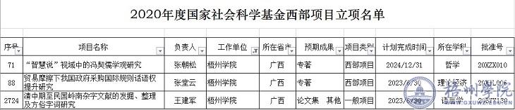校图书馆王建军教授申报的《清中期至民国岭南杂字文献的发掘、整理及方俗字词研究》、马克思主义学院张朝松副教授申报的《“智慧说”视域中的冯契儒学观研究》及商学院张堂云副教授申报的《贸易摩擦下我国政府采购国际规则话语权提升研究》项目获国家社科基金项目立项。国家社科基金项目在立项总数上居全区同类院校前列,立项项目学科涵盖文学、哲学和经济学,类别包括一般项目和西部项目,与往年相比,学科分布范围更广,显示出学校人文社科发展的良好态势。