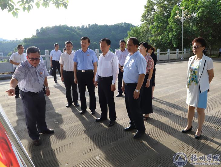 7月29日下午,自治区党委常委、统战部部长徐绍川到我校调研。自治区党委统战部一级巡视员、机关党委书记李银霞,梧州市委书记全桂寿,市委常委、统战部部长钟碧珍,我校党委书记唐平秋、校长杨奔、副校长宾月景等领导陪同调研。