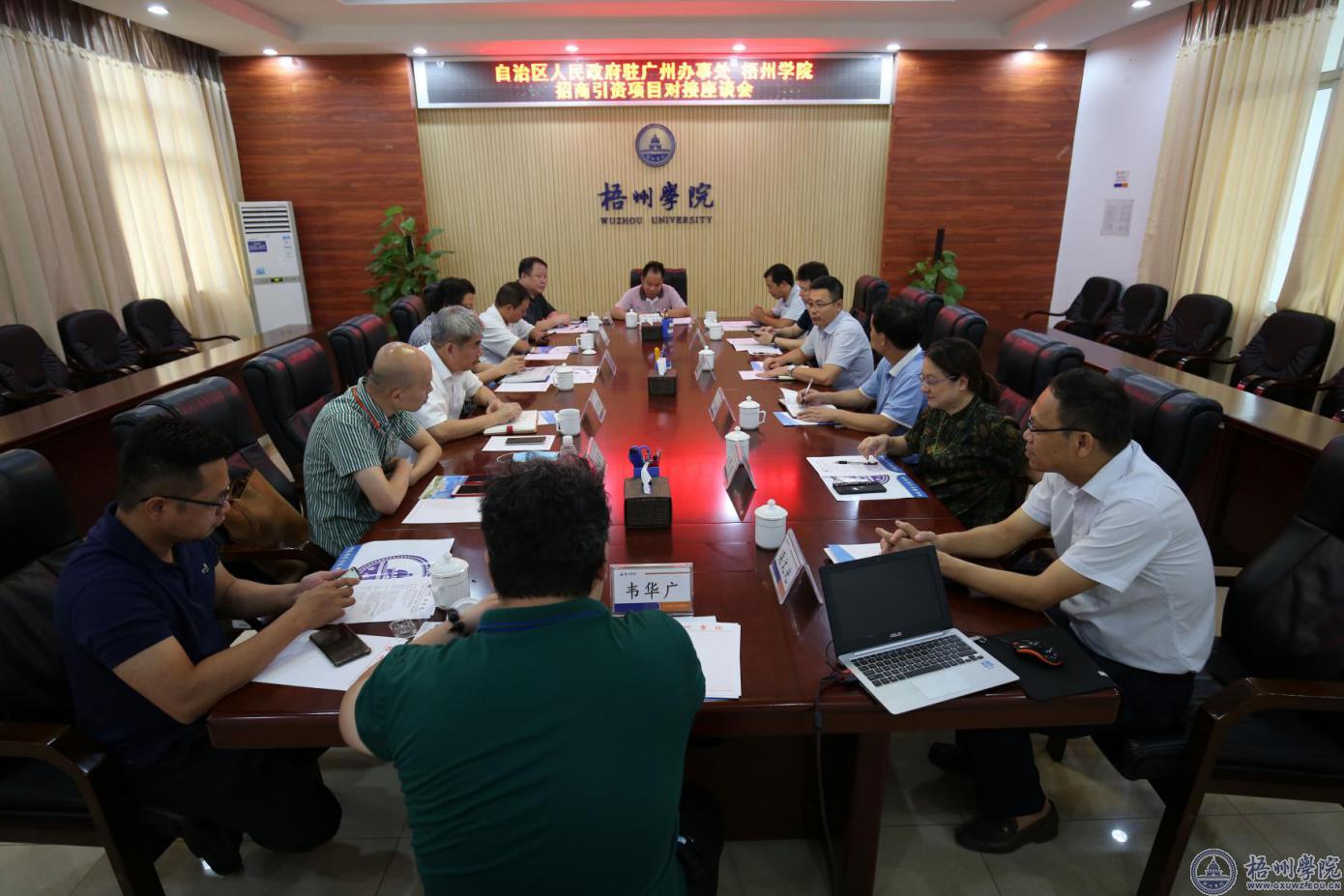 7月2日下午,自治区人民政府驻广州办事处党组成员、二级巡视员莫育敏,陪同中国国际工程咨询公司广西分公司投资顾问何嘉传等一行9人,来校开展招商引资项目对接工作。期间,召开了招商引资项目对接座谈会,双方就开展国际合作、共建双一流学院战略合作和联合办学事项进行交流洽谈。学校副校长宾月景参加座谈会。