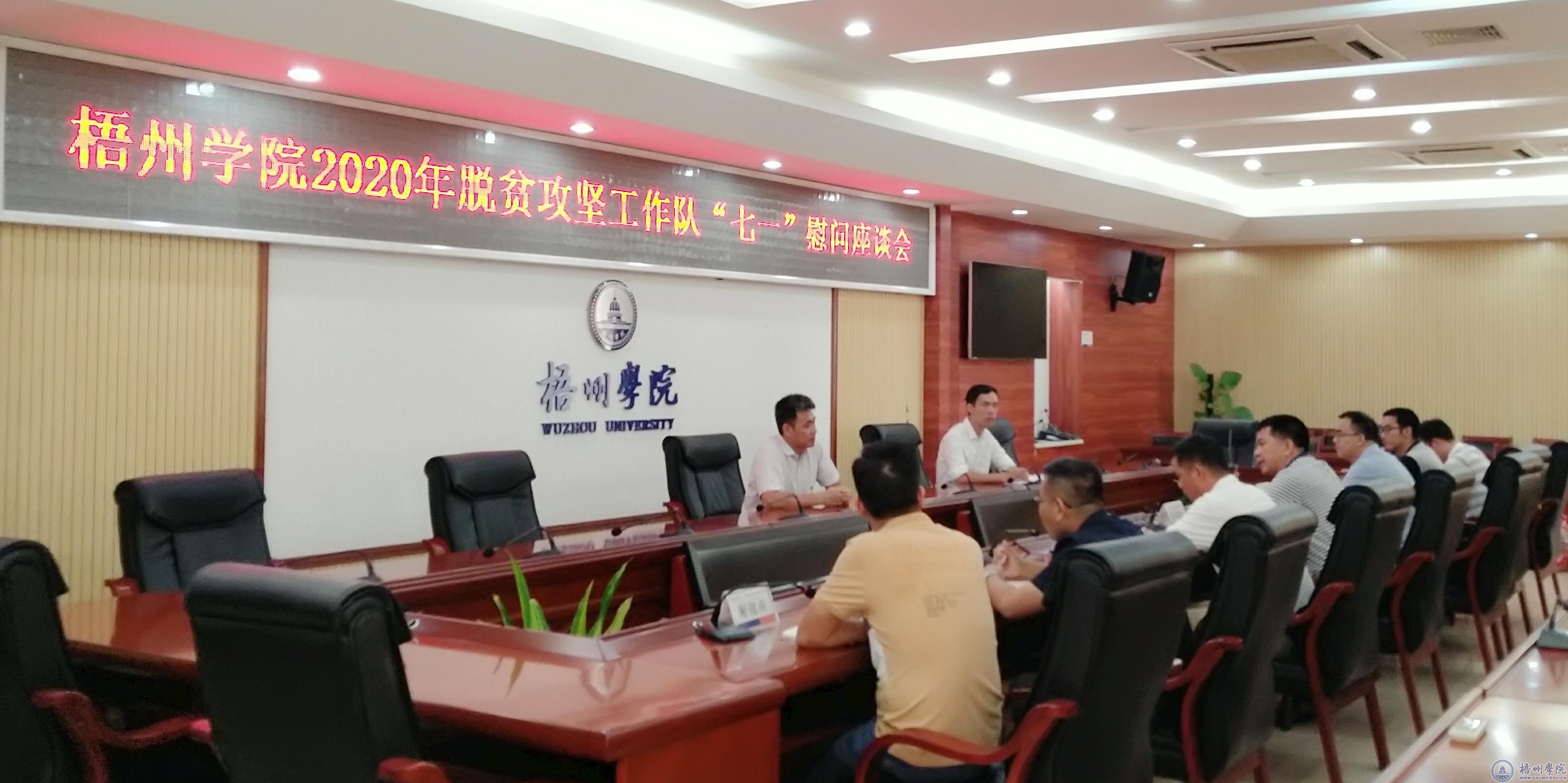 慰问现场(胡蝶摄) 关爱激励脱贫攻坚(乡村振兴)工作队 学校在明理楼八楼第一会议室召开脱贫攻坚工作队慰问座谈会。校党委常委、组织部部长黄健武在座谈会中仔细询问脱贫工作队队员各项工作进展和生活情况,鼓励工作队队员们在脱贫攻坚战的收官之年要牢固树立“交总账”意识和“军令状”意识,切实增强脱贫攻坚工作的使命感、责任感、紧迫感,确保如期高质量完成脱贫攻坚目标任务。