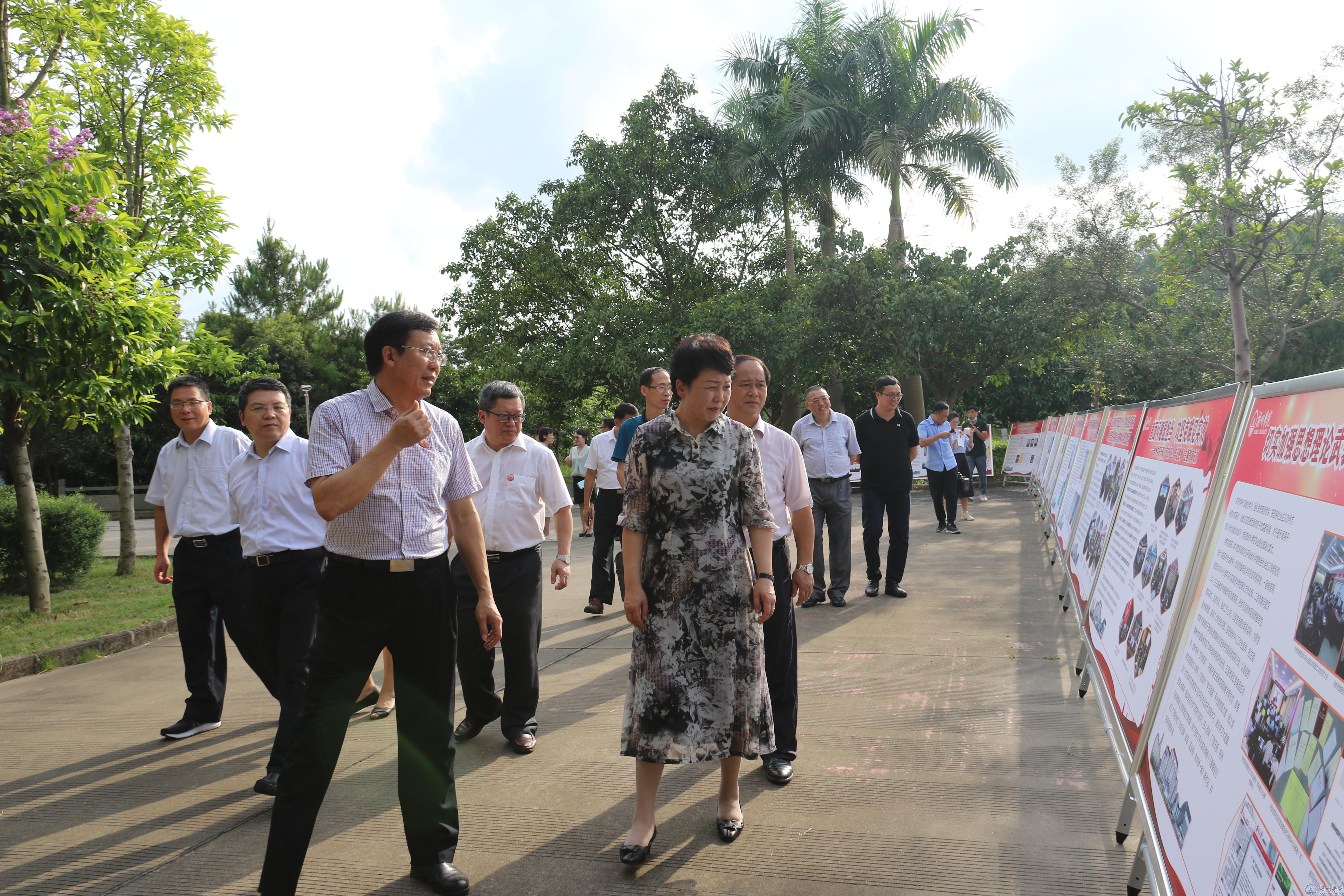 7月7日下午,自治区党委常委、宣传部部长范晓莉到我校就学习贯彻习近平新时代中国特色社会主义思想、《中国共产党宣传工作条例》情况开展调研。自治区党委宣传部常务副部长孙大光,梧州市委书记全桂寿,梧州市委常委、宣传部部长黄恩,我校党委书记唐平秋,校长杨奔,党委副书记曹迎参加有关活动。
