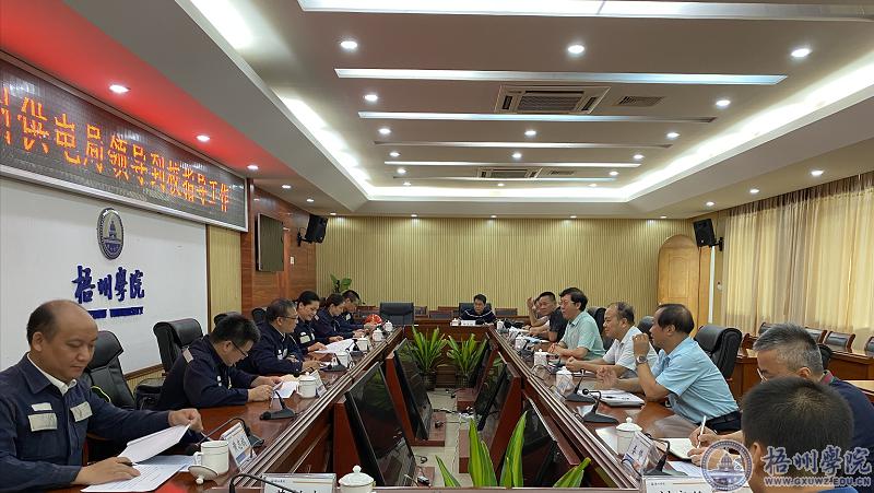 6月19日上午,梧州供电局党委书记张宁一行到校就我校基建工程电力设施等问题进行现场办公。学校党委书记唐平秋、副校长玉振明出席会议。市供电局副总经理覃俏云供电局、万秀分局相关人员,学校后勤基建处处长覃雄彪及相关人员参加了座谈会。