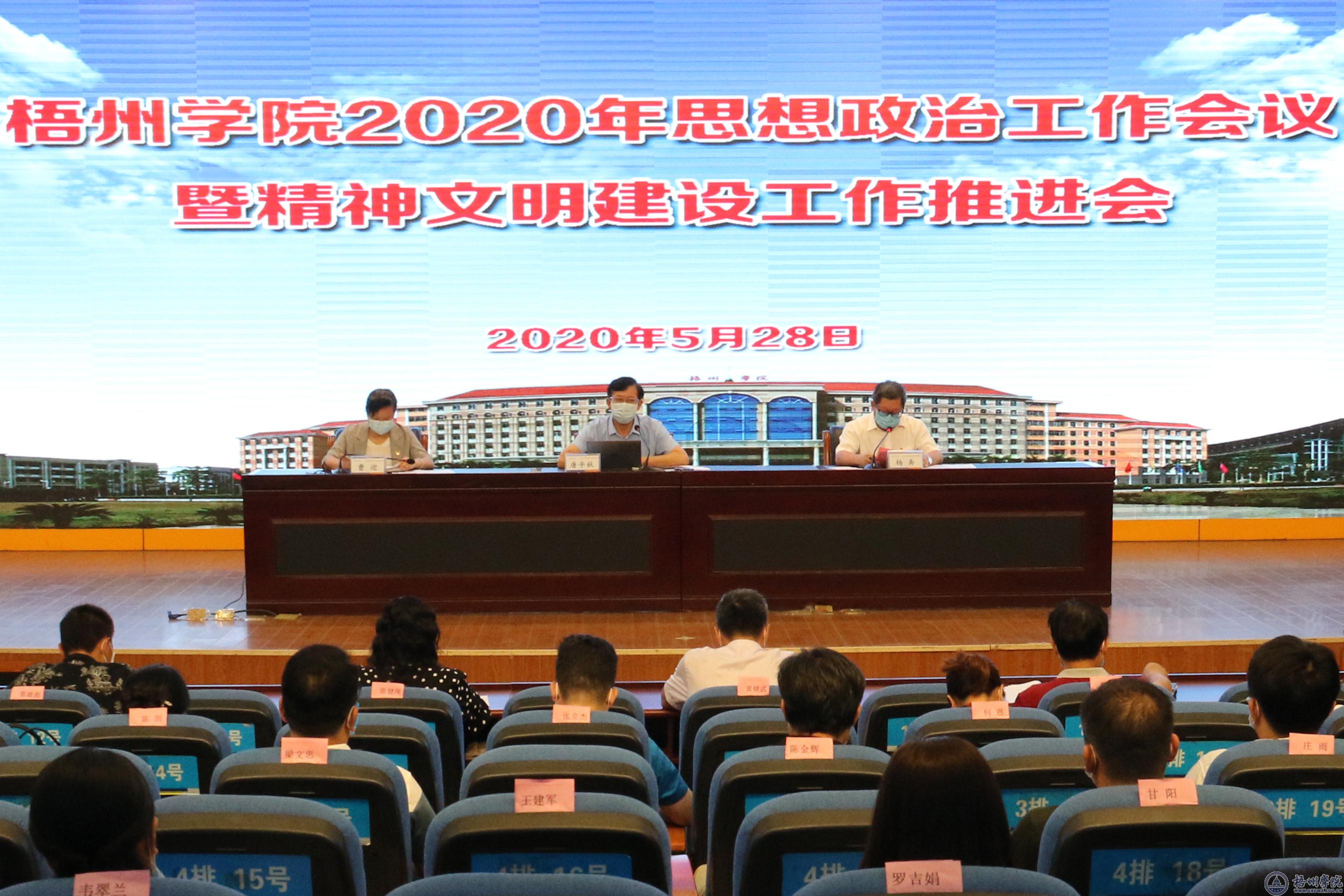 校党委副书记曹迎作学校精神文明建设工作布置。她指出,2019年,我校的精神文明建设工作卓有成效,全校师生齐心协力、文明礼貌,爱校荣校,展现了积极向上的精神面貌。就如何做好2020年精神文明建设工作,她提出,要以创建全国文明校园为抓手,推动创建工作常态化发展;要深化“做新时代文明人”活动,加强新时代文明实践所建设;要坚持问题导向、争先创优,助力梧州市“四城联创”工作。