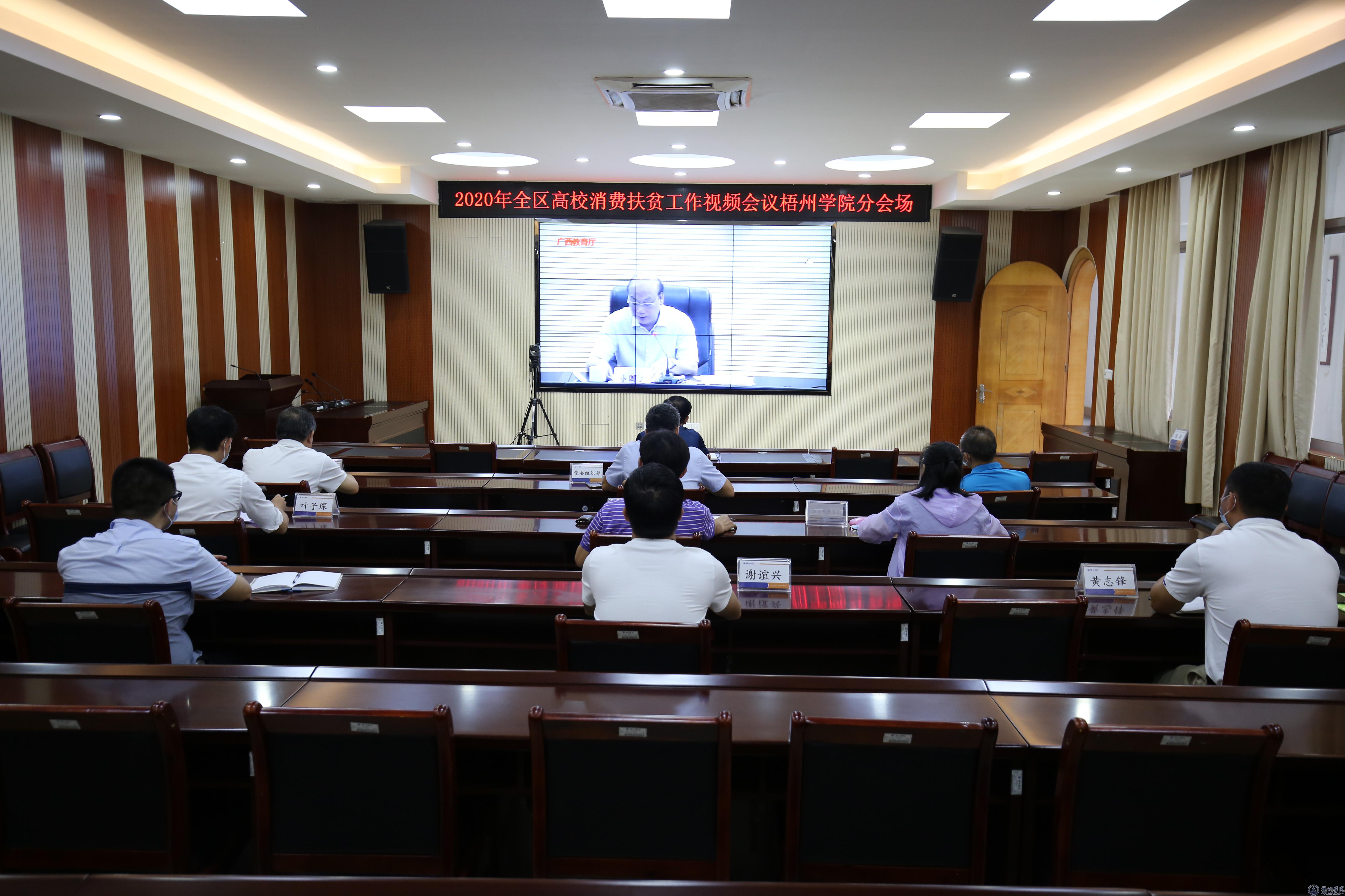 6月5日上午,自治区教育厅召开2020年全区高校消费扶贫工作视频会议,我校在明理楼七楼视频会议室设置分会场,学校纪委书记梁业华,党委组织部、财务处、后勤基建处、审计处、国有资产管理处、校工会等部门负责人,学校驻村工作队员参加会议。