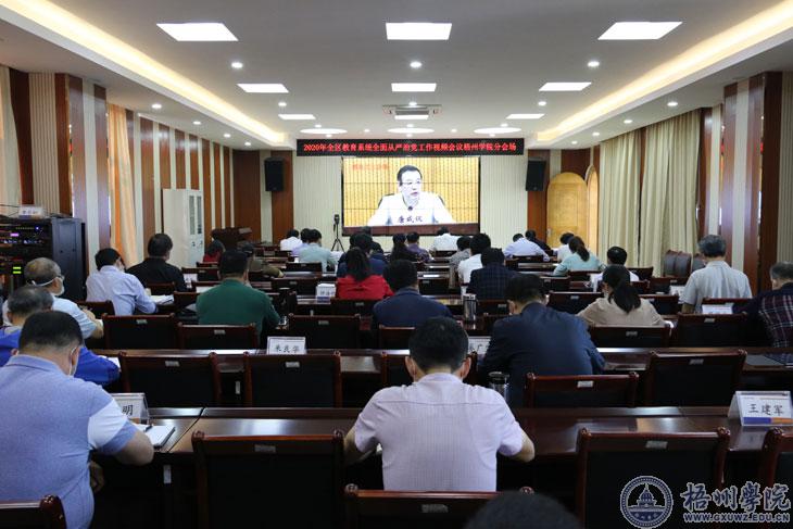 4月29日,2020年全区教育系统全面从严治党工作视频会议在南宁召开。自治区党委教育工委书记、教育厅党组书记、厅长唐咸仅,自治区纪委、监委驻教育厅纪检组组长、教育厅党组成员林华出席会议并讲话。我校在明理楼视频会议室设立分会场,学校党委领导班子成员,校党委委员、纪委委员,各单位、各部门主要负责人(二级学院党委、党总支书记)参加视频会议。