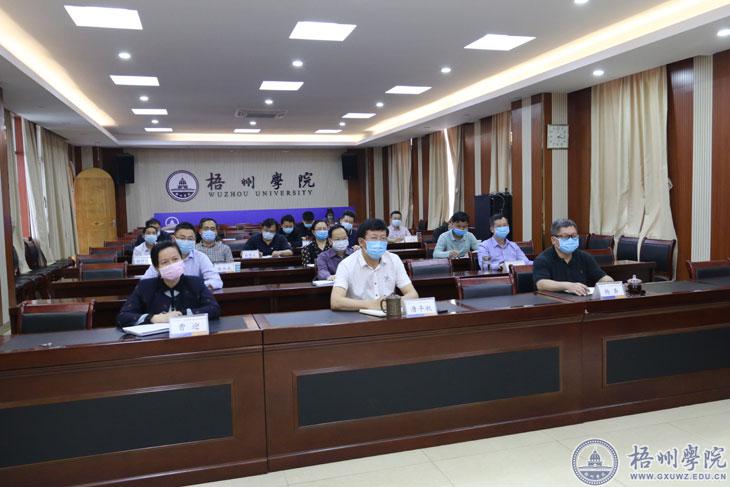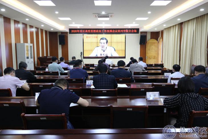 4月29日下午,2020年全区高校思想政治工作视频会议在南宁召开。自治区党委教育工委书记、教育厅厅长唐咸仅出席会议并讲话。会议由自治区党委教育工委专职副书记、教育厅党组成员李晓勇主持。学校领导唐平秋、杨奔、曹迎、梁业华、麻新纯、宾月景在学校明理楼视频会议室设立的分会场参加会议。