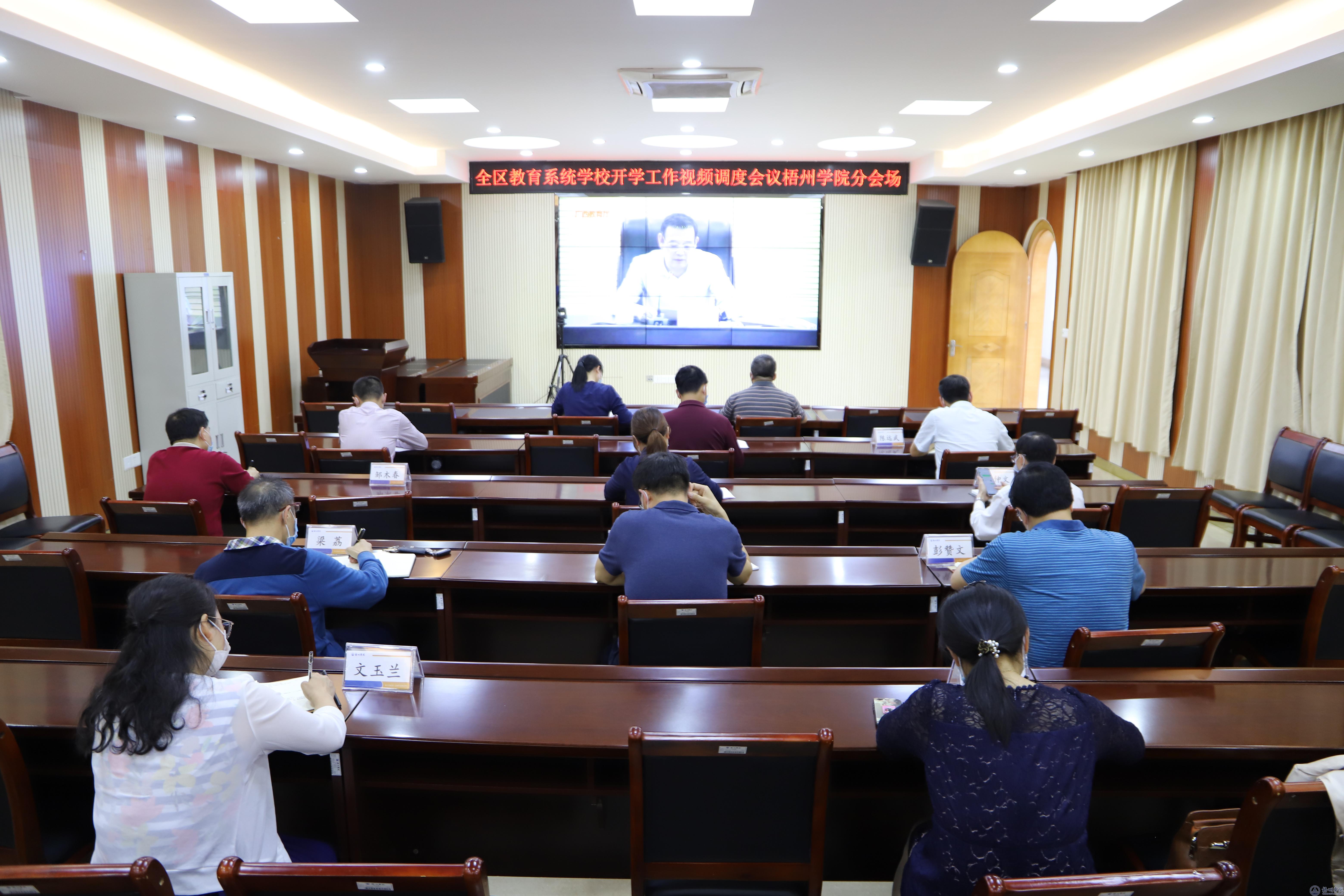 4月30日下午,全区教育系统开学工作视频调度会在南宁召开,自治区党委教育工委书记、教育厅厅长唐咸仅出席会议并讲话。校长杨奔,校党委副书记曹迎,学校新冠肺炎疫情防控工作领导小组指挥部下设办公室主任、各工作组组长在学校明理楼视频会议室设立的分会场参加会议。