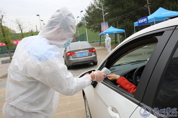 “您好!您的体温是36.6℃。”在学生返校接待区,现场工作人员正对一名自驾车送子女返校的家长进行体温报告。所有自驾车送学生返校的车辆均从东大门缓缓驶入,在学生返校接待区接受工作人员的体温检测。