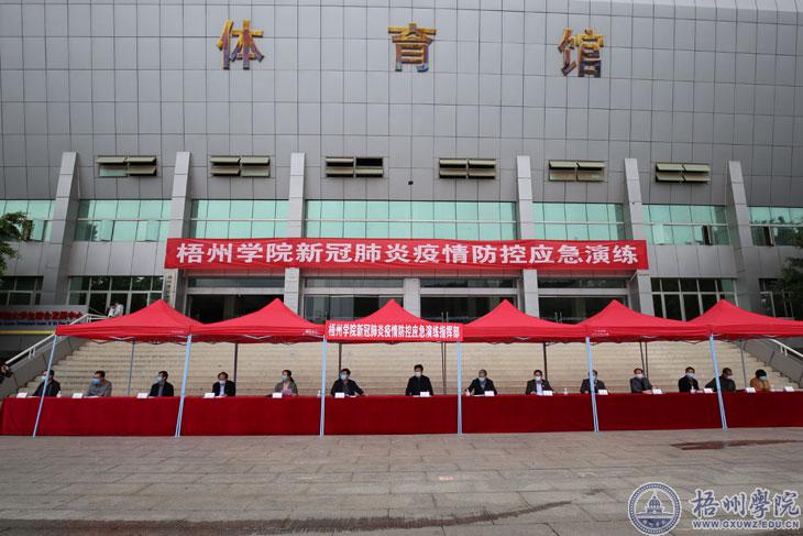 4月7日下午,我校举行新冠肺炎疫情防控应急演练。梧州市委常委、市政府常务副市长吴浩岭,市委常委、副市长马辉,市委副秘书长黄春全,市新冠肺炎防控指挥部开学工作组副组长、教育局副局长唐棣和朱宇乾,市卫生健康委员会党组成员江带灵到演练现场观摩指导。学校演练总指挥、学校党委书记唐平秋,演练总指挥、校长杨奔,学校领导曹迎、玉振明、邱房贵、梁业华、麻新纯、宾月景在现场指导应急演练。学校新型冠状病毒感染的肺炎疫情防控工作领导小组指挥部下设开学工作组所有成员,党员志愿者服务队员272人、校卫队员12人参加演练。