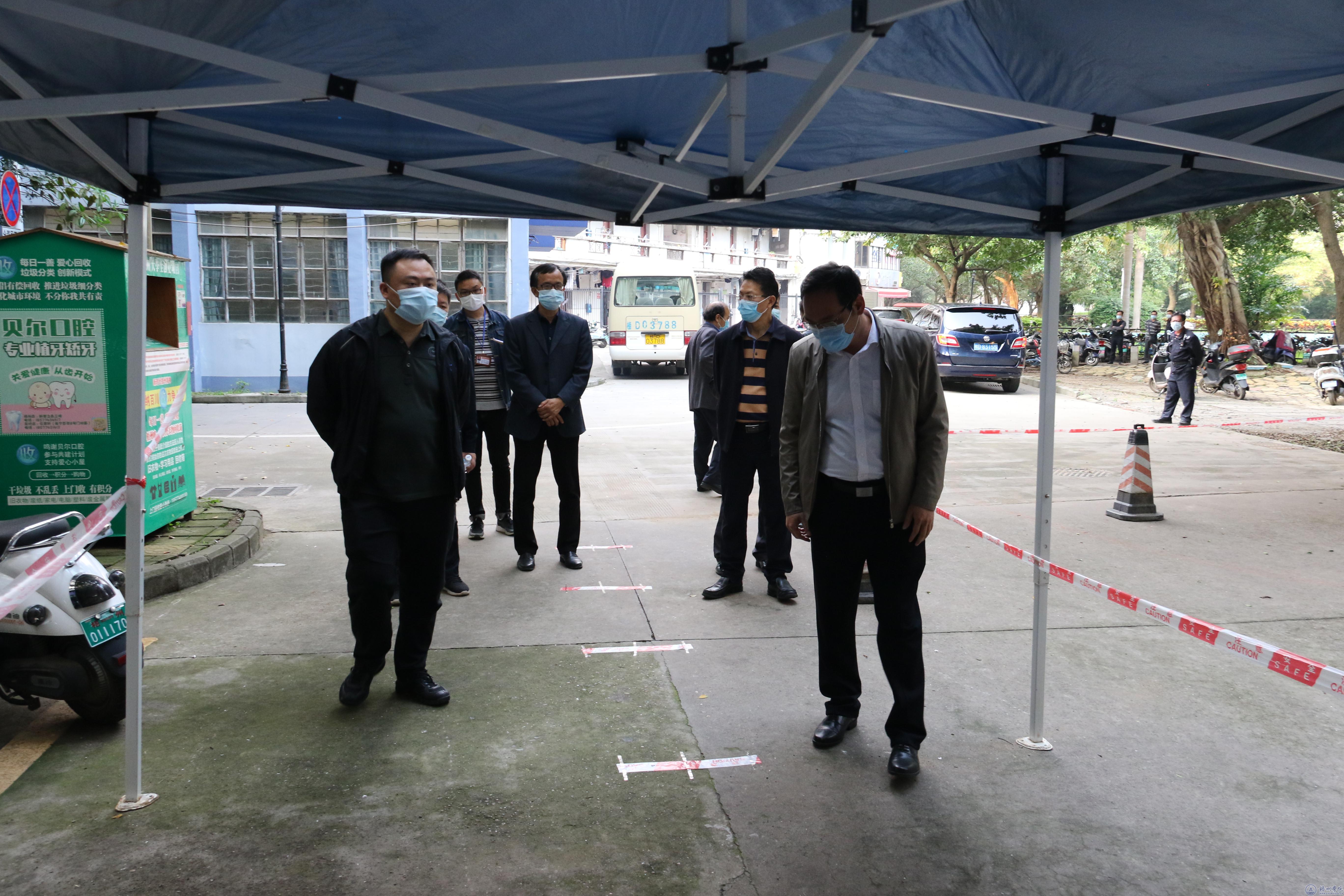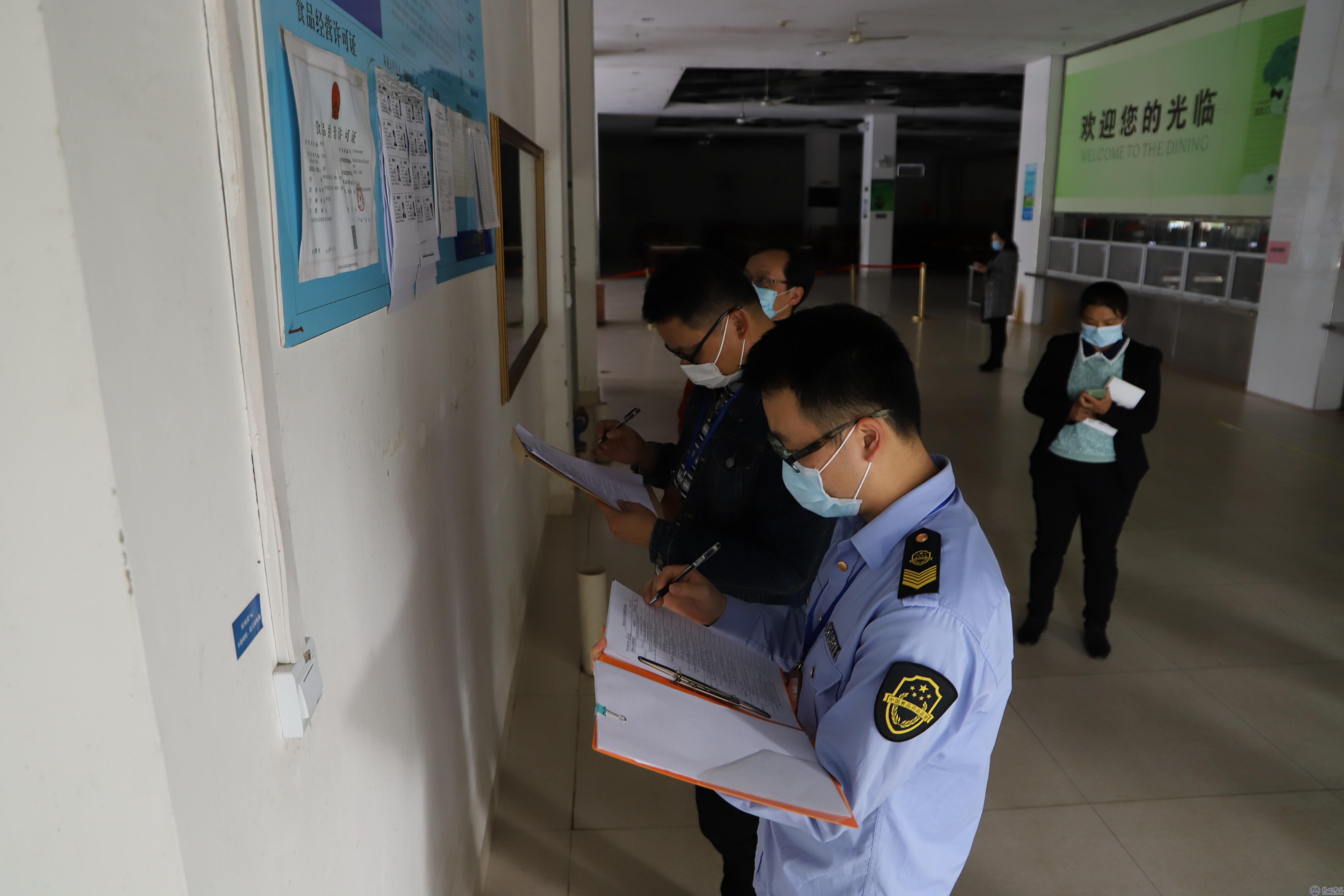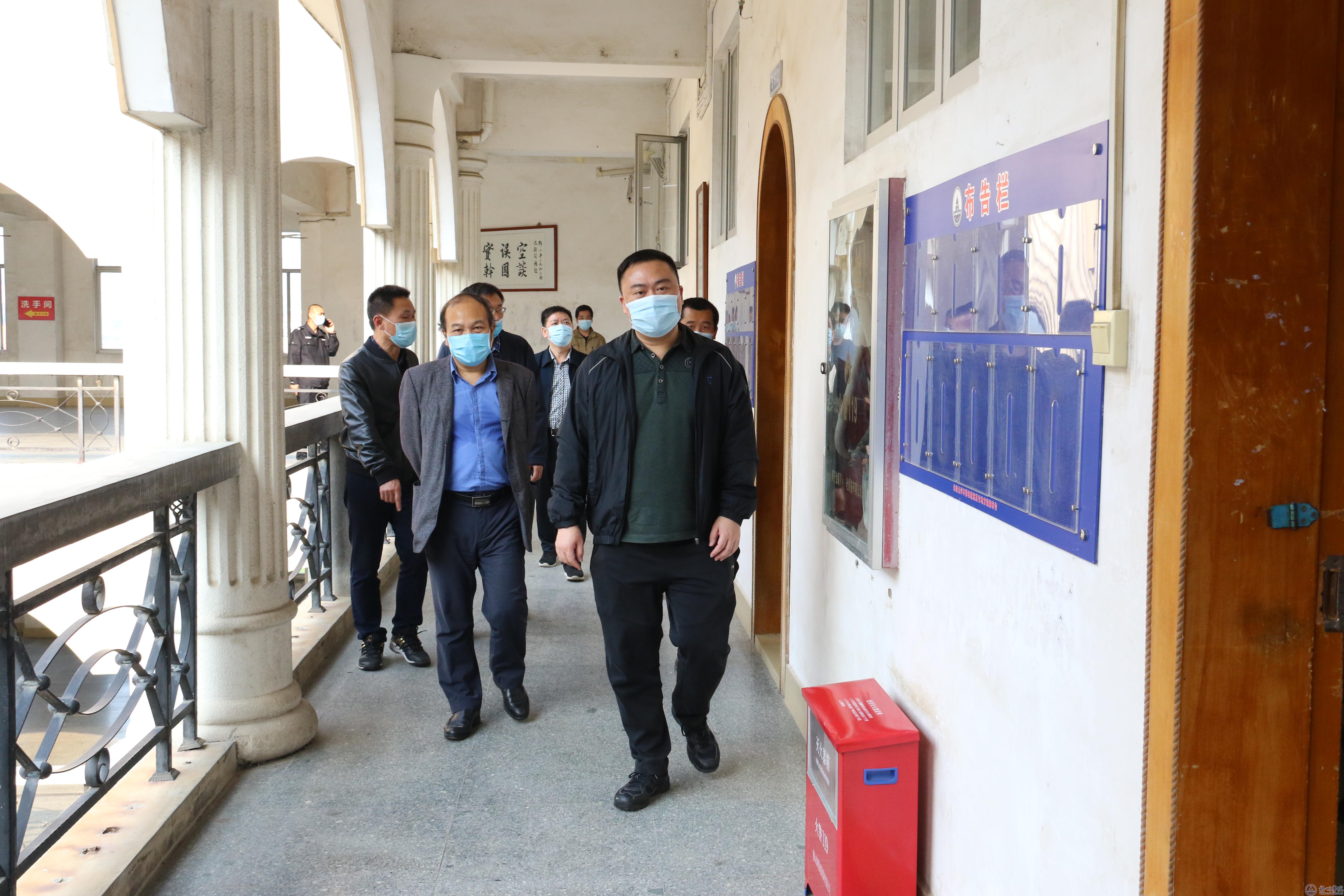汇报会后,评估组一行实地走访了教室、实验室、防疫物资库、临时隔离点、学生宿舍、学生食堂、校内超市、饮水设备,深入了解校园管理、防疫物资储备、环境消毒、食品安全、错峰用餐等情况,并详细查阅了学校疫情防控的工作台账。