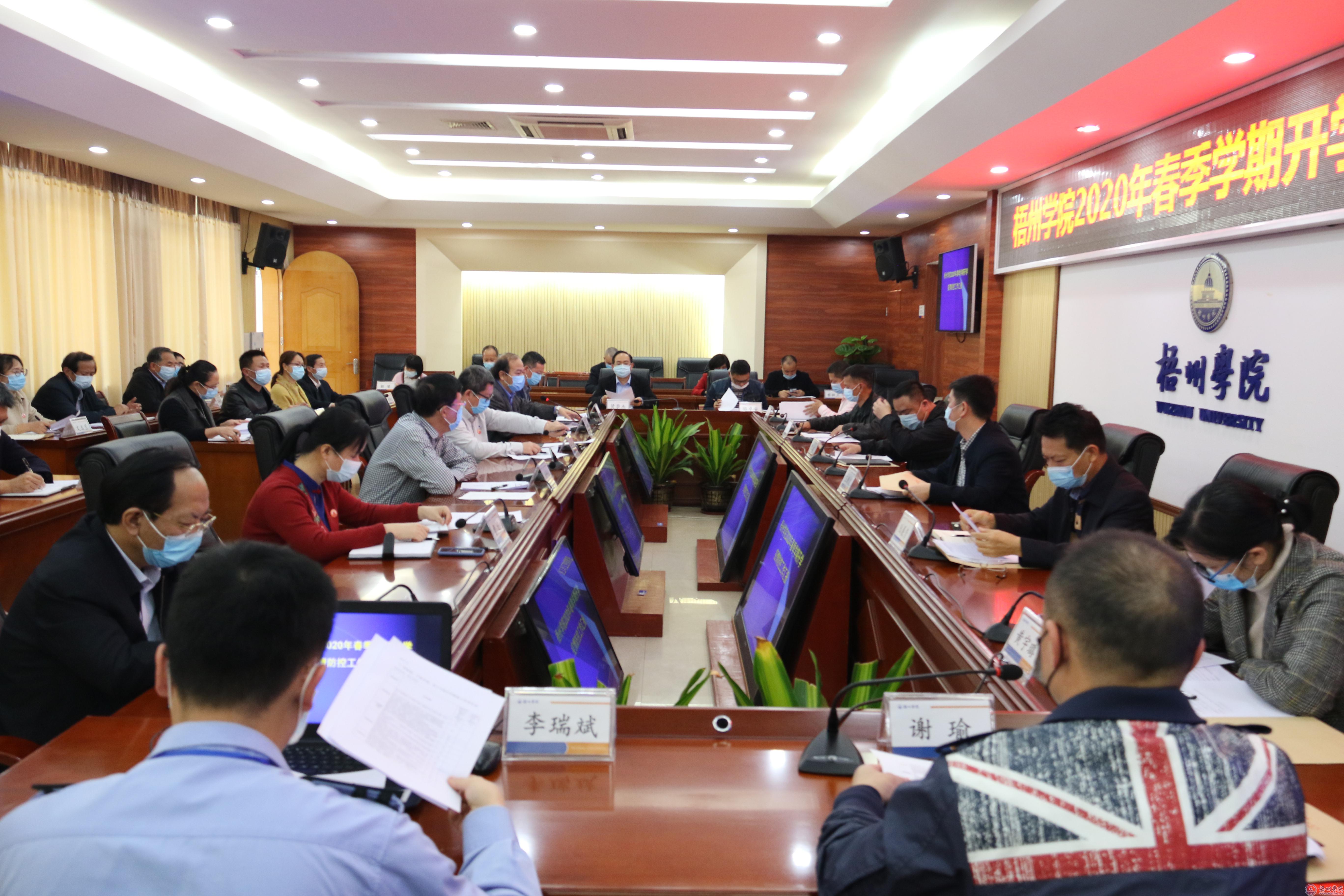 按照自治区、梧州市新型冠状病毒感染的肺炎疫情防控工作领导小组指挥部开学工作组的工作部署,4月9日,梧州市教育局党组书记、局长覃颂为组长的梧州市疫情防控领导小组指挥部开学评估第一工作组一行9人到我校评估开学准备工作。汇报会在明理楼八楼第一会议室召开,学校领导唐平秋、杨奔、曹迎、玉振明、邱房贵、麻新纯,学校开学工作组全体成员,二级学院党委(党总支)书记或院长参加汇报会。汇报会由校长杨奔主持。