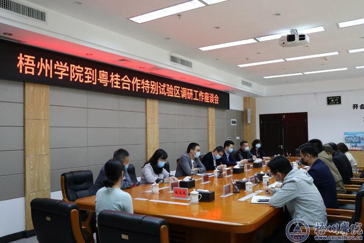 调研组一行在粤桂合作特别试验区管委会负责人的陪同下,参观了试验区规划展览馆,深入了解粤桂合作特别试验区的历史使命、发展历程、产业规划,双方在推进校地科研项目合作、学生就业实习、教师挂职锻炼等方面进行深入交流洽谈,并达成共识。