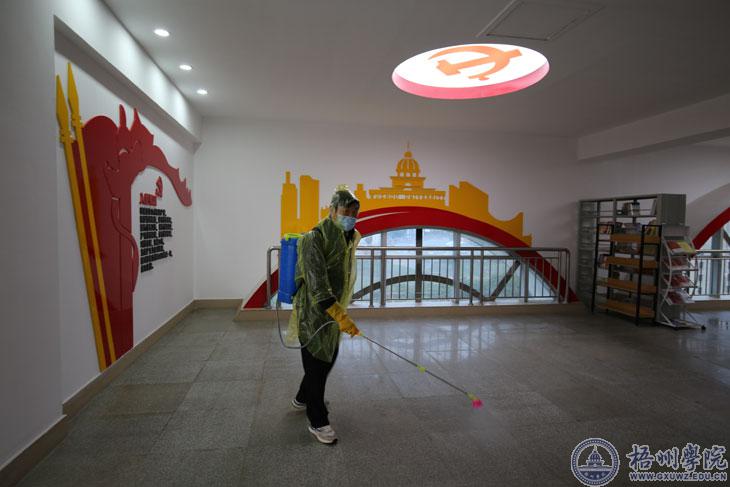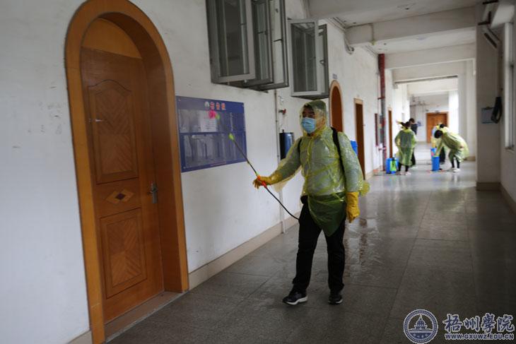 本次消毒区域包括教学主楼明理楼、图书馆、实验楼、行政楼、第一教学楼、体育馆、风雨球场、网球场、教师教育学院校区等。志愿者对上述区域每个角落进行彻底杀毒,不留死角。