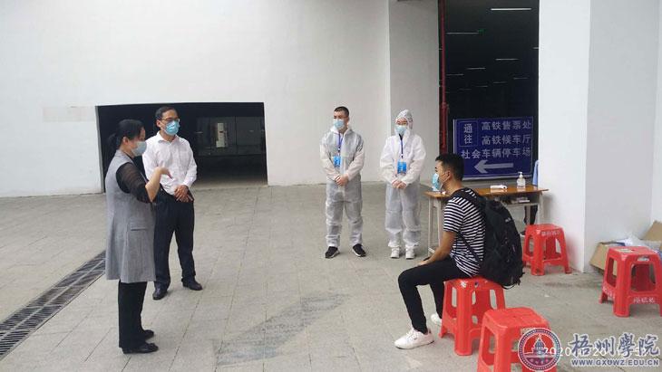 校党委副书记曹迎到梧州南站看望返校学生(秦伟 摄)