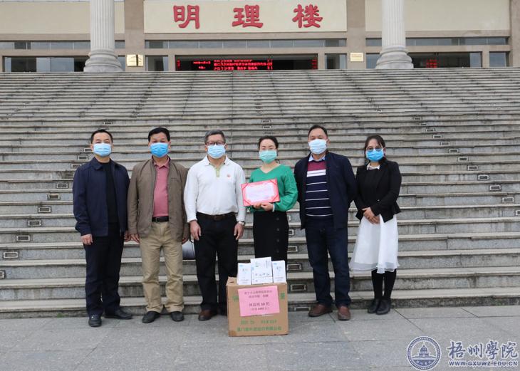 3月11日上午,广西泓凯教育集团公司董事长甘友清代表我校继续教育培训合作伙伴、南宁市北部湾泓凯职业培训学校向我校捐赠体温枪10把,助力我校疫情防控工作。校长杨奔代表学校接受捐赠,并对南宁市北部湾泓凯职业培训学校的捐赠表示感谢,希望两校继续友好合作,推动继续教育培训上新台阶。校友工作办公室、国有资产管理处、继续教育学院负责人见证了捐赠。