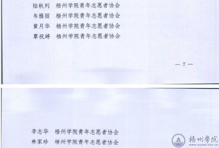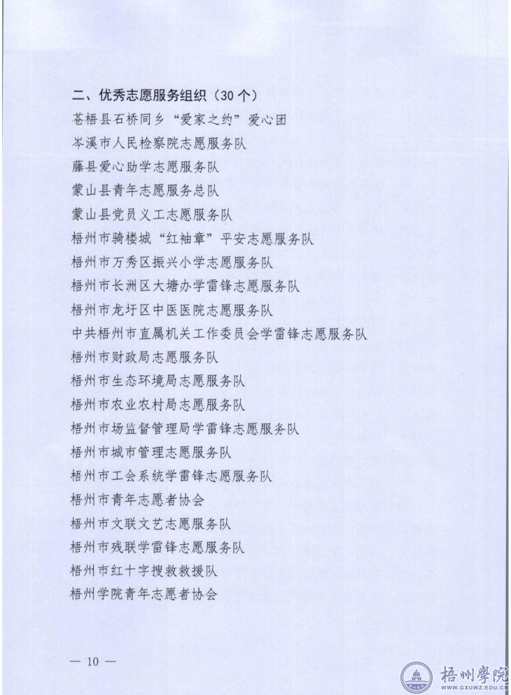 根据梧州市精神文明建设委员会办公室、梧州志愿服务联合会《关于表扬2019年度梧州市新时代文明实践志愿服务先进典型通报》,我校荣获优秀志愿服务组织称号及我陆秋列等5名学子荣获梧州市新时代文明实践志愿服务先进典型称号。