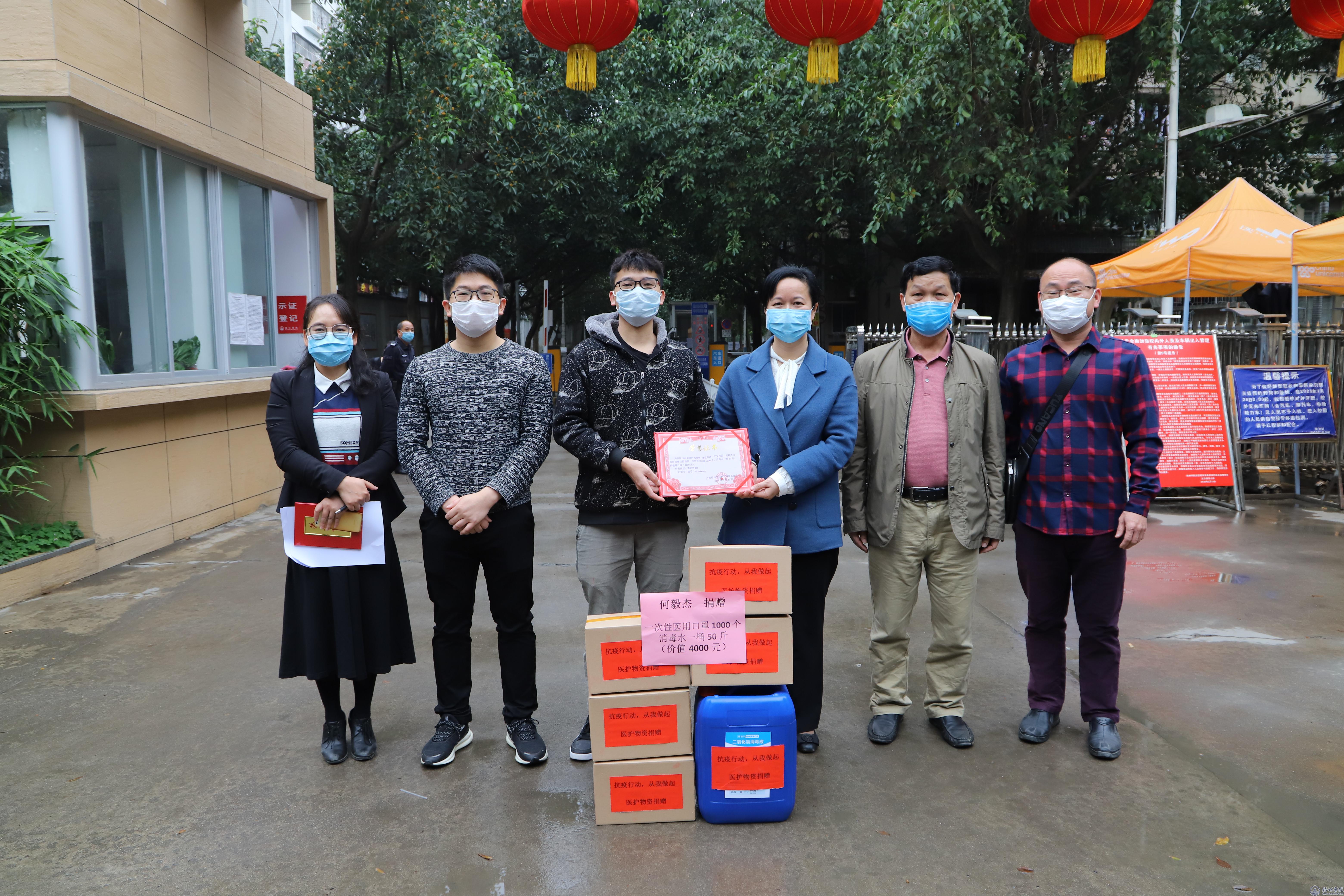 3月17日上午,我校2014级计算机科学与技术班校友熊起桥创办的小熊信息科技有限公司向学校捐赠了1台临时布控人体测温设备,价值8000元。自主创业在校生、2018级电子信息工程专业专升本班何毅杰同学委托在梧校友向学校捐赠一次性医用口罩1000个、消毒水1桶50斤,价值4000元。校党委副书记曹迎代表学校接受捐赠,向熊起桥校友、何毅杰同学表示感谢,对两人自主创业成功后主动为学校捐赠疫情防控物资的爱心行动给予充分肯定,希望他们进一步加强毕业校友与在校同学之间的“传帮带”,提升我校创新创业教育水平,助力梧州市经济社会发展。