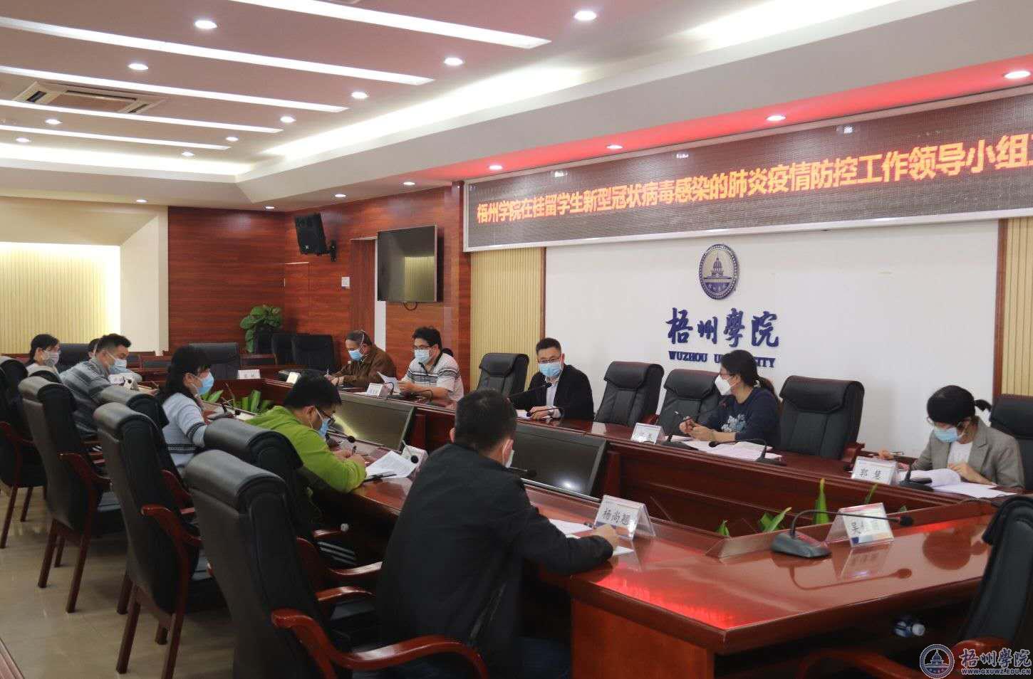 2月27日下午,学校根据自治区教育厅和自治区外事办有关精神和要求,结合学校实际,召开在桂留学生新型冠状病毒感染的肺炎疫情防控工作专题会议。副校长宾月景主持会议,学校在桂留学生新型冠状病毒感染的肺炎疫情防控工作领导小组(以下简称:留学生疫情防控领导小组)成员,以及领导小组下设办公室、信息联络组成员参加会议。