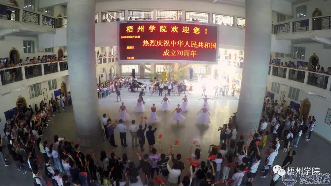6.我校通过多种形式活动庆祝新中国成立70周年。在迎接新中国成立70周年华诞之际,我校通过举办《我和我的祖国》快闪活动、大型晚会、军训阅兵等活动形式庆祝新中国成立70周年。通过各项系列活动凝聚师生力量,国庆当周,官方微信平台登上全区高校微信公众号排行榜第一,并在广大师生和社会中起到热烈的反响。(9月29日学校官微、官网报道)