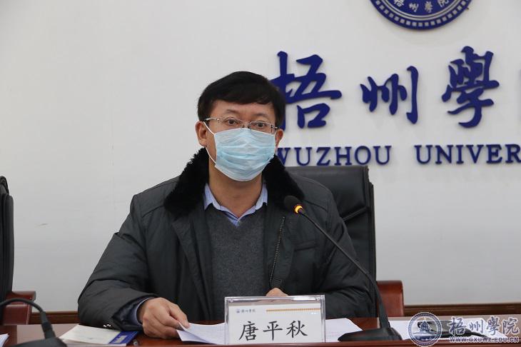 唐平秋指出,要从五个方面进一步做好我校的疫情防控工作:一是提高政治站位,增强做好疫情防控工作的责任感、使命感。要把师生员工生命安全和身体健康放在第一位,把疫情防控工作作为当前最重要的工作来抓,全面提升学校防控工作规格、能级和水平;二是加强组织领导,把中央和上级党委的各项决策部署落到实处;三是强化使命担当,落实疫情防控工作责任。各级领导干部要在疫情防控斗争中靠前指挥,切实做到守土有责、守土负责、守土尽责;四是要加强协调联动,提高疫情防控工作的实效。尽快形成集中统一、运行高效的防控指挥系统,形成整体有序、反应快捷的信息发布与宣传格局,形成内外贯通、部门联动的发热病患隔离观察工作机制;五是要发挥示范引领作用,依靠师生打赢疫情防控阻击战。广泛组织基层党组织和党员落实联防联控措施,建立健全学校、社区等防护网络,做好疫情监测、排查、预警、防控等工作,加强联防联控,严防死守、不留死角,构筑群防群治抵御疫情的严密防线。