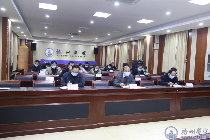 2月1日下午,自治区党委教育工委、教育厅召开全区教育系统加强新型冠状病毒感染的肺炎疫情防控确保开学安全电视电话会议。自治区党委教育工委书记、自治区教育厅厅长唐咸仅出席会议并讲话。自治区教育厅副厅长李清先主持会议。为减少人员流动,经请示教育厅同意,学校领导唐平秋、杨奔、曹迎、麻新纯分别在南宁、玉林等地分会场参加会议。玉振明、邱房贵、梁业华及各职能部门主要负责人在我校明理楼七楼视频会议室参加会议。