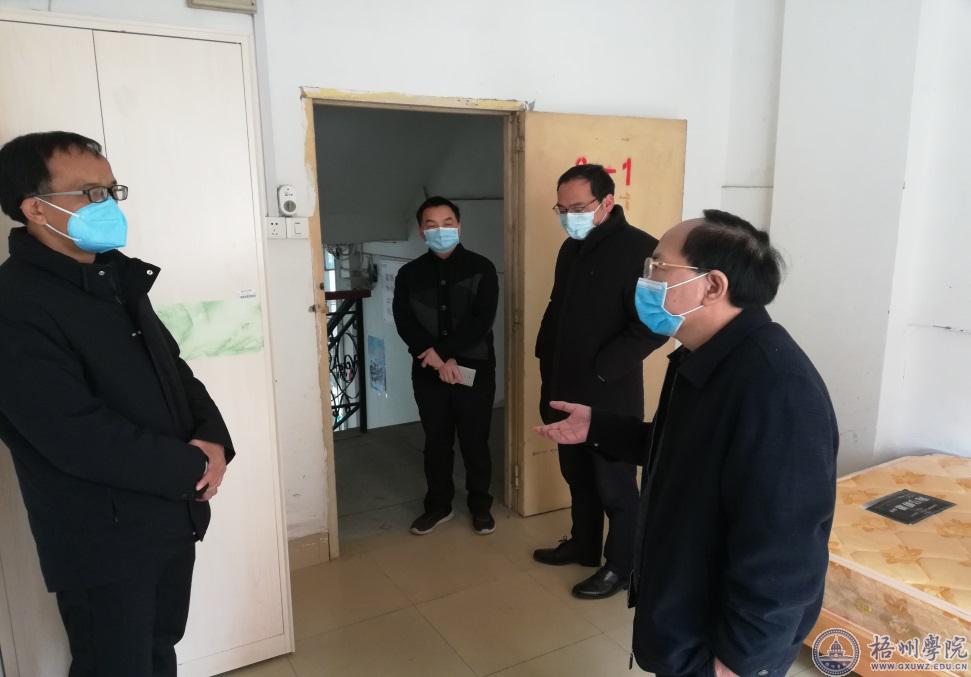 邱房贵副校长(右一)在检查隔离观察宿舍