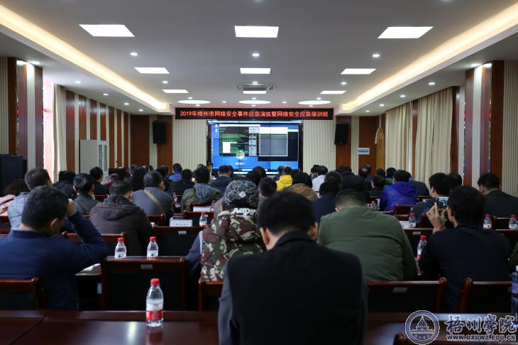 12月31日上午,2019年梧州市网络安全事件应急演练暨网络安全应急培训班在我校举办,梧州市公安局、科技局、市委网信办等有关单位和从事网络安全管理和技术工作的相关人员参加了培训班。