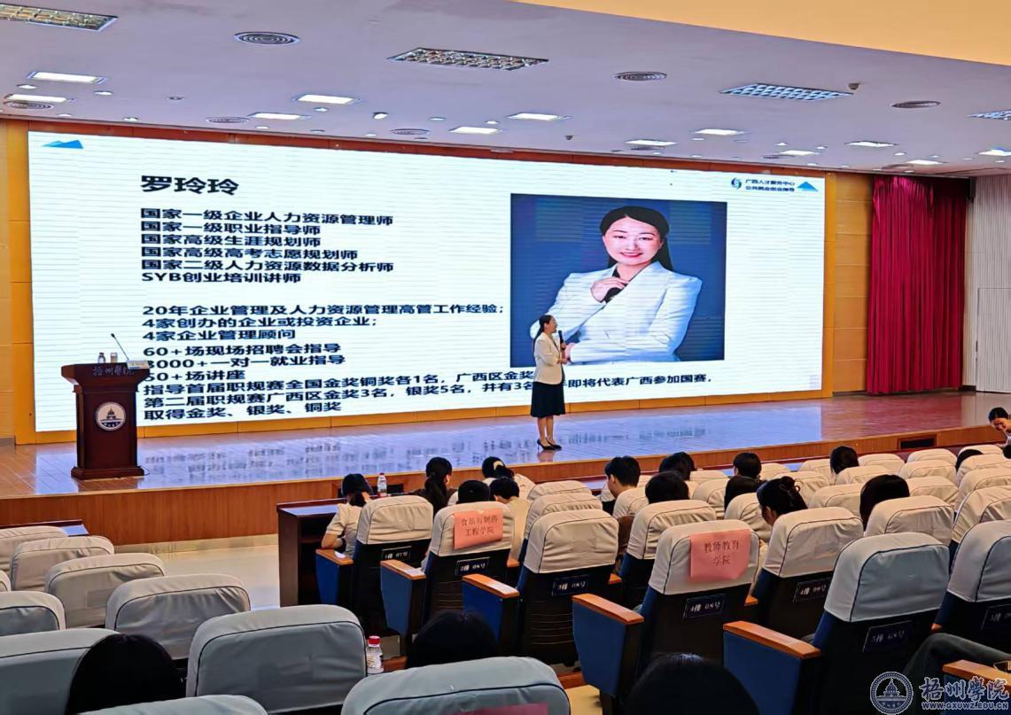 为提升我校毕业生就业竞争力,助力在校生掌握专业简历制作技巧,5月20日下午,由学校学生工作处和梧州市人力资源和社会保障局联合主办的“破茧成蝶—打造打动HR的黄金简历”专题讲座在明理楼一楼学术报告厅举行,活动吸引600余名学生参与。