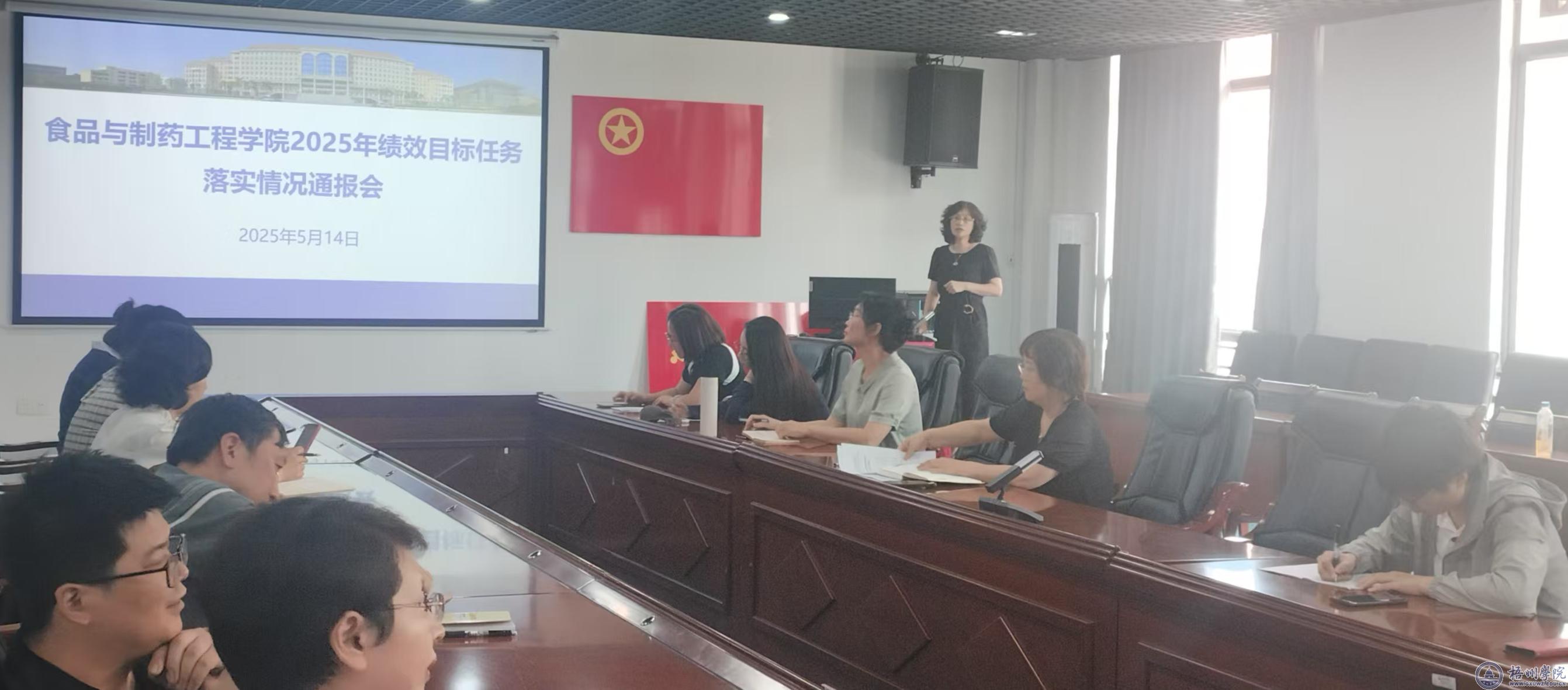 为扎实推进学院重点工作高效开展,5月14日下午,食品与制药工程学院于实训楼北座205会议室,召开2025年绩效目标任务落实情况通报会与本科教育教学审核评估工作第六次推进会。学院院长江成英、副院长朴春红及全体教职工参会,会议由江成英院长主持。