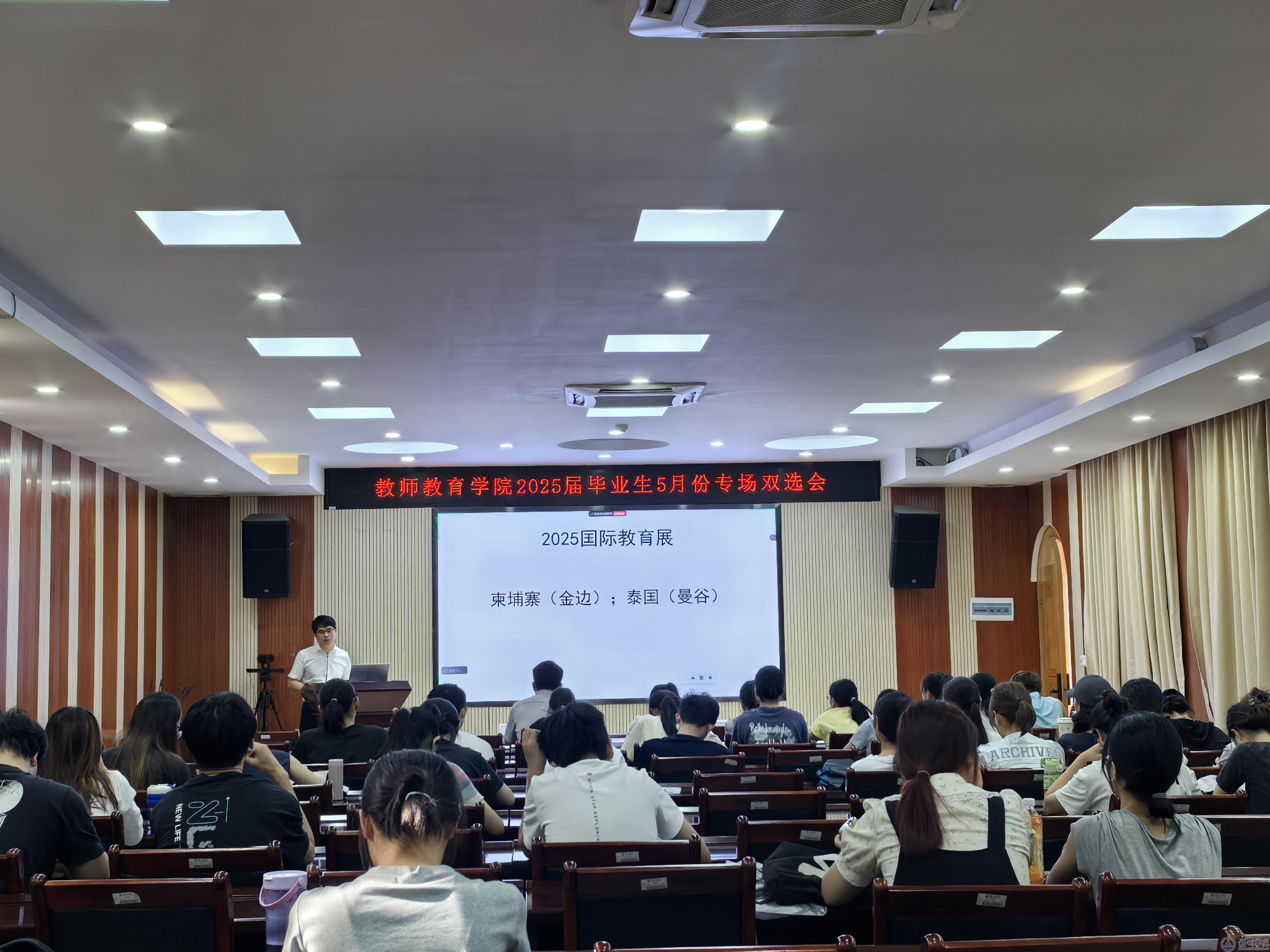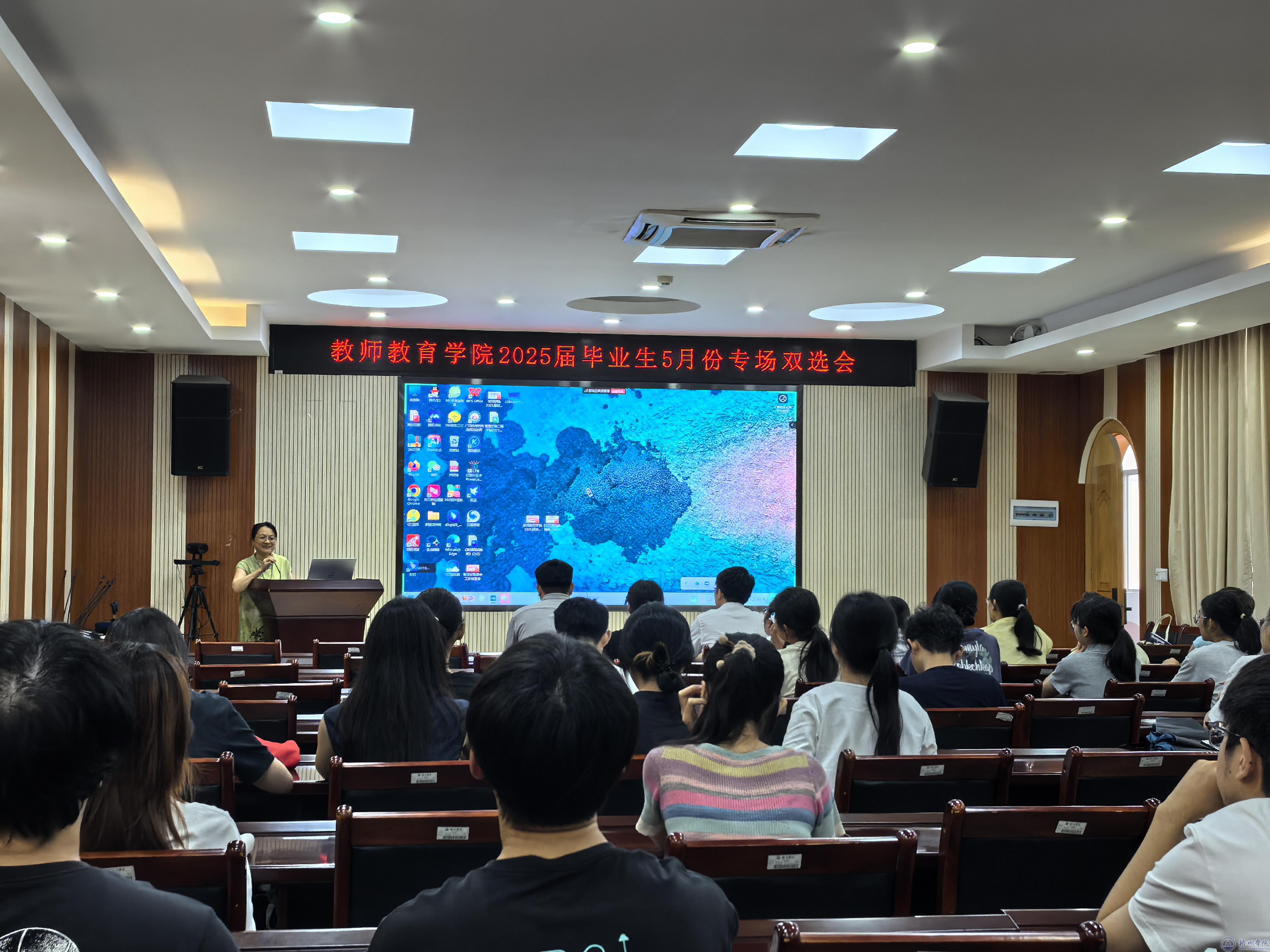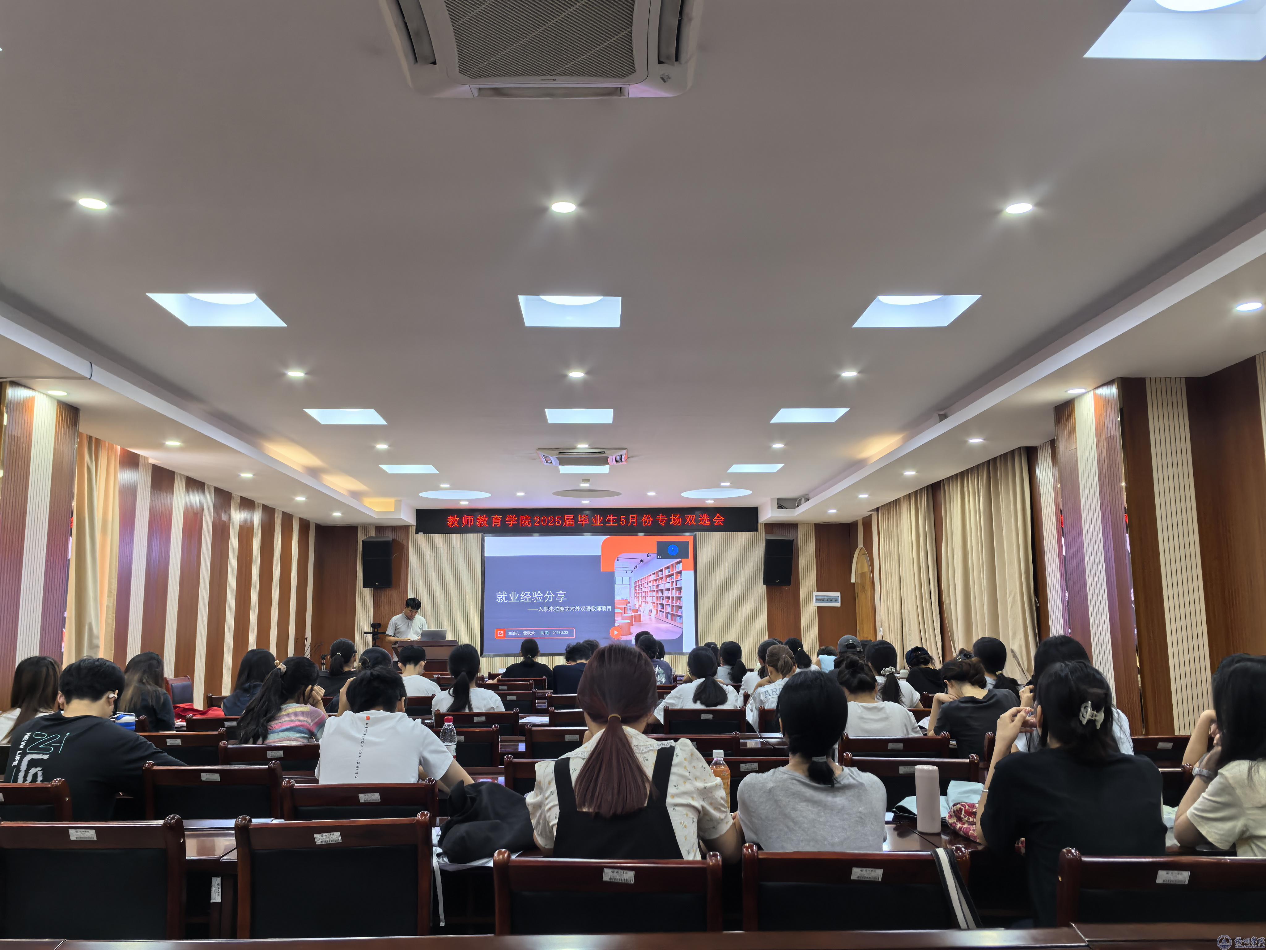 5月22日,教师教育学院创新采用线上线下双线联动模式,举办2025届毕业生5月份专场双选会。学校党委常委、宣传部部长邓小林,国际交流处处长何恩,教师教育学院党委副书记庄雨与220名师生共同参与此次活动。