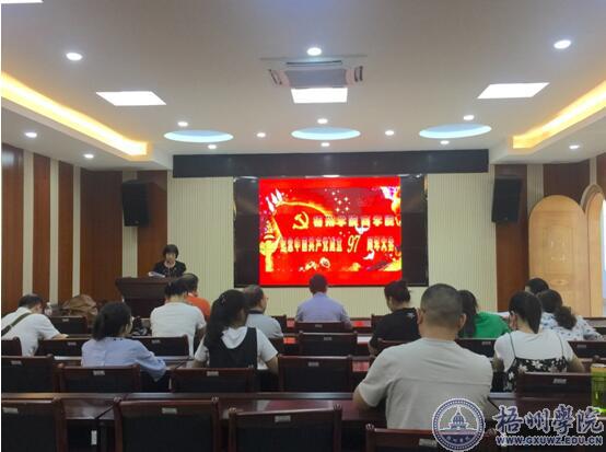 7月11日下午,商学院党委在明理楼7楼视频会议室组织商学院全体党员职工一起,以学习中央精神和重要讲话的形式,共同庆祝中国共产党成立97周年。副校长麻新纯以普通党员的身份参加了会议。