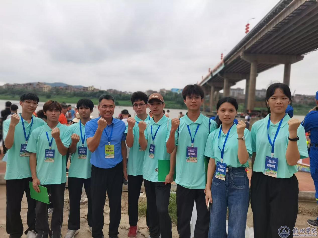 5月31日,备受瞩目的2025年梧州·粤港澳大湾区龙舟邀请赛在梧州市浔江江面震撼开赛。学校统战部部长黄健武受邀担任本次比赛的仲裁委员,并主持龙舟比赛的点睛仪式。体育健康学院师生应组委会邀请,承担起点、终点计时,赛道秩序维护等各岗位裁判工作。师生们以精湛的专业素养与严谨的敬业精神,为赛事的顺利运行提供坚实保障,赢得了赛事组委会、参赛队伍和现场观众的高度评价。