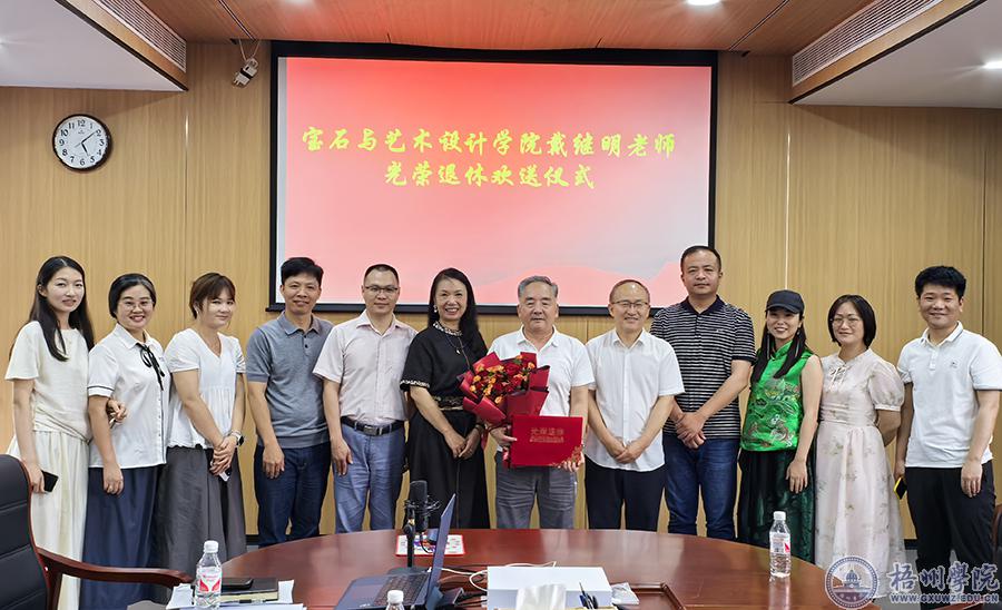 5月21日,宝石与艺术设计学院在实验楼二楼会议室为戴继明同志举办光荣退休仪式,学院全体班子成员,以及环境艺术设计教研室教师代表参加活动。