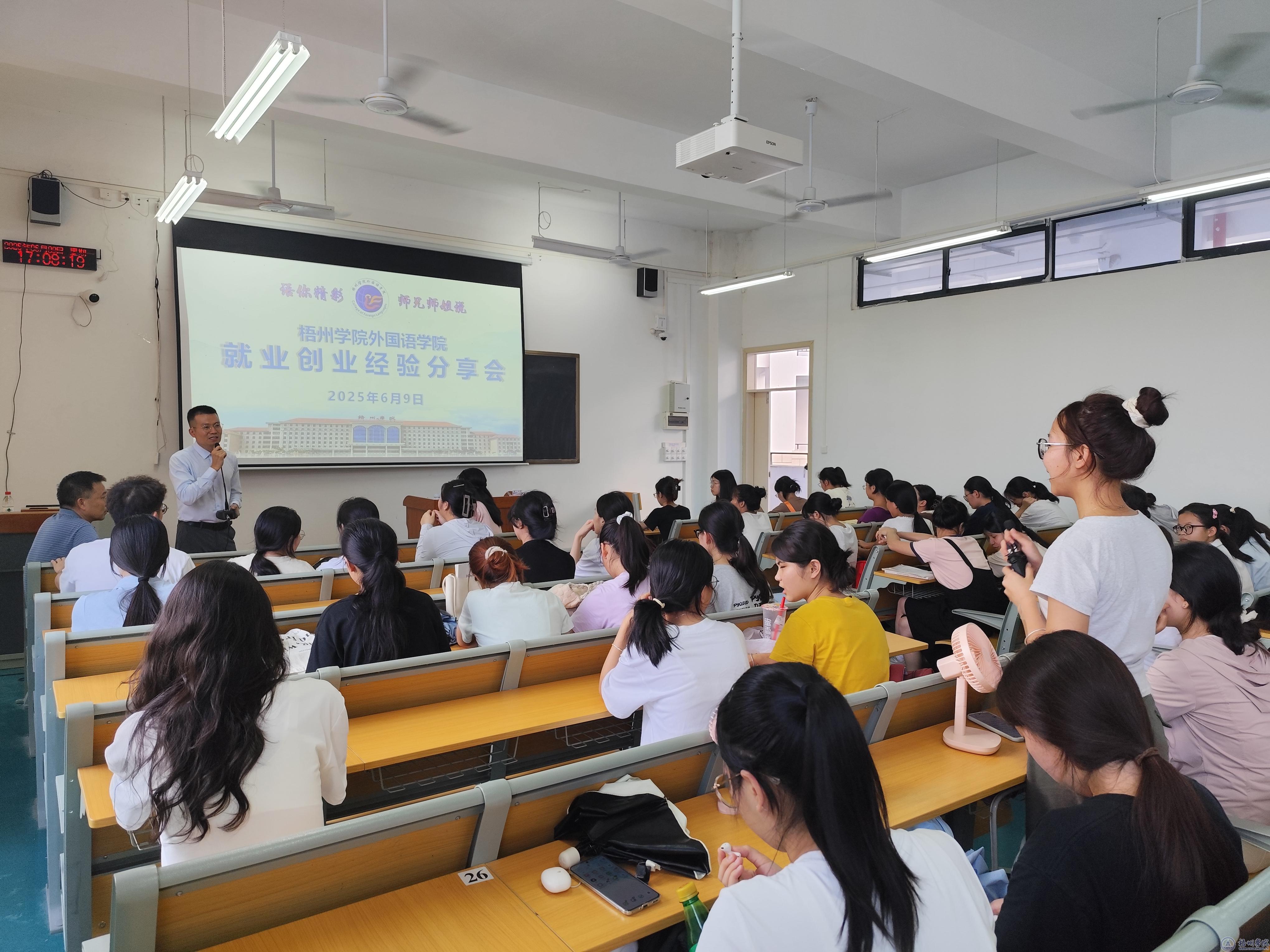 6月9日,外国语学院邀请优秀校友付土成返校开展一场别开生面的就业创业经验分享会,学院党委副书记韦翠兰、学院专业老师雷应秋,外国语学院学生代表参加此次活动。