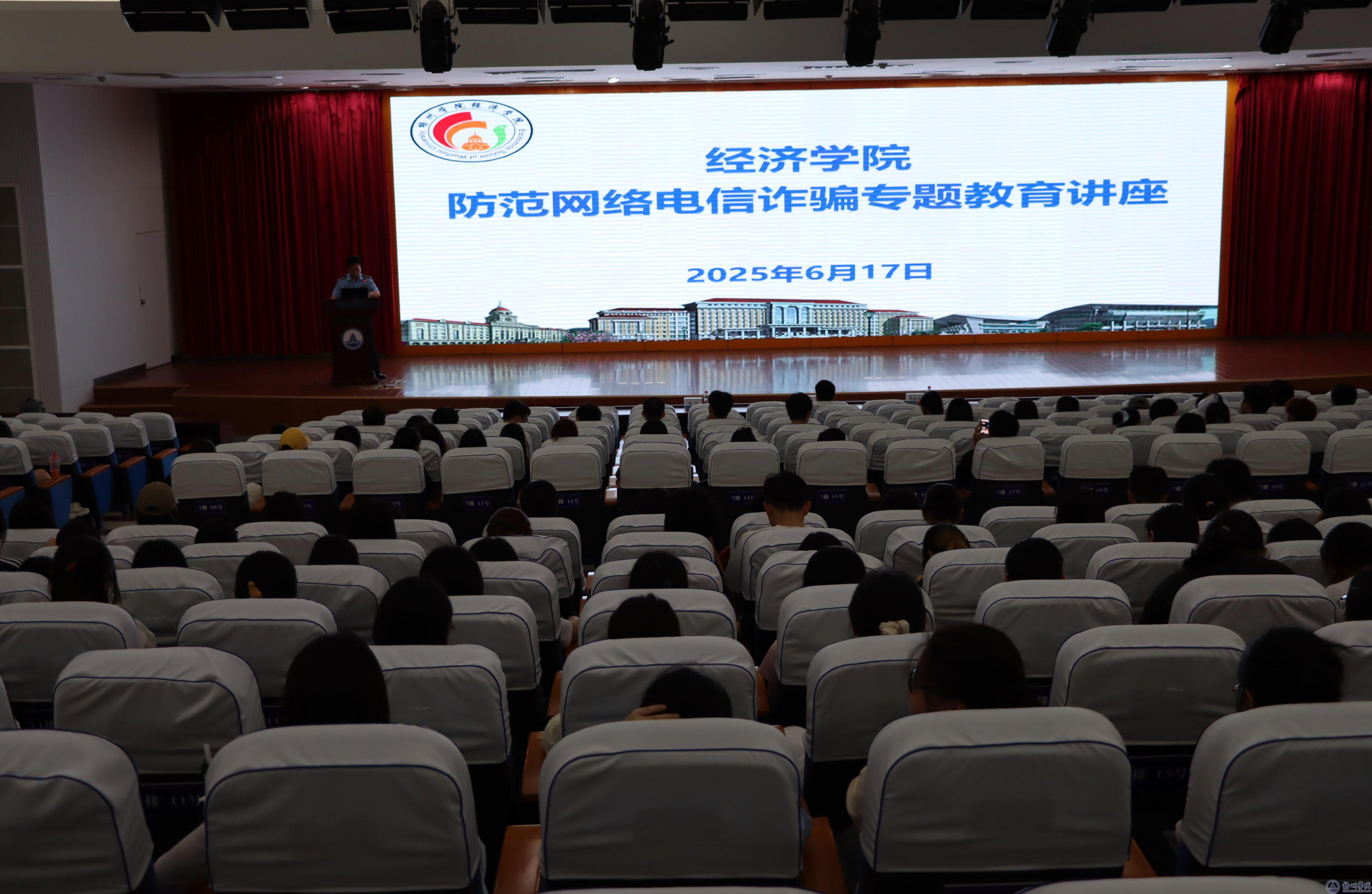 为提高广大师生防范电信诈骗意识,6月17日晚,经济学院在明理楼学术报告厅举办防范网络电信诈骗专题教育讲座,邀请学校保卫处处长庄雨、梧州市公安局驻校警务联络官覃焕新为师生作专题教育。经济学院近400名师生参加了讲座,讲座由学院党委书记陈丹主持。