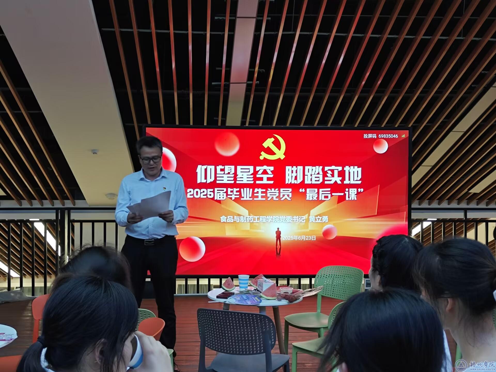 为强化毕业生党员理想信念教育,食品与制药工程学院6月23日下午在北区食堂4楼组织“初心不改 奋进远航”2025届毕业生党员主题教育活动,为即将离校的党员送上组织的殷切嘱托。