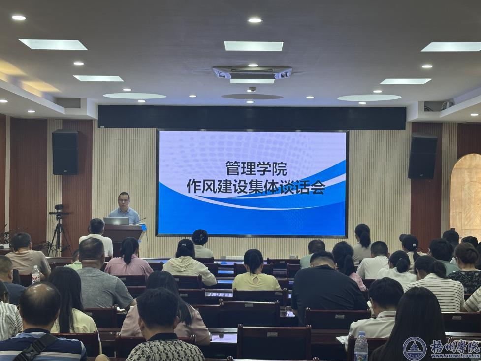 7月9日,管理学院召开作风建设集体谈话会,全体教职工参加会议。