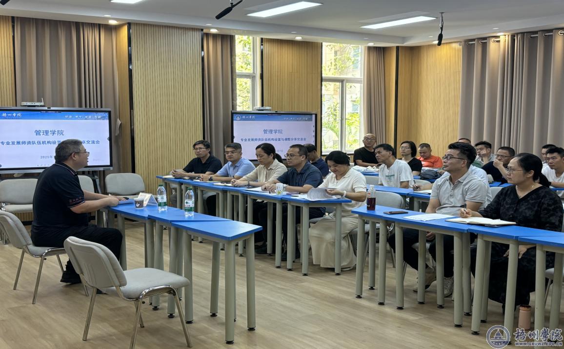 7月7日,管理学院举办学科专业一体化建设研讨交流会。会议特邀广西大学工商管理学院院长、博士生导师朱帮助教授到场指导。管理学院、经济学院领导班子成员及教师代表参会。