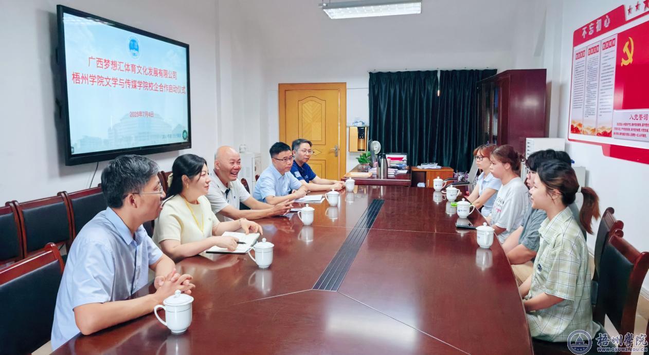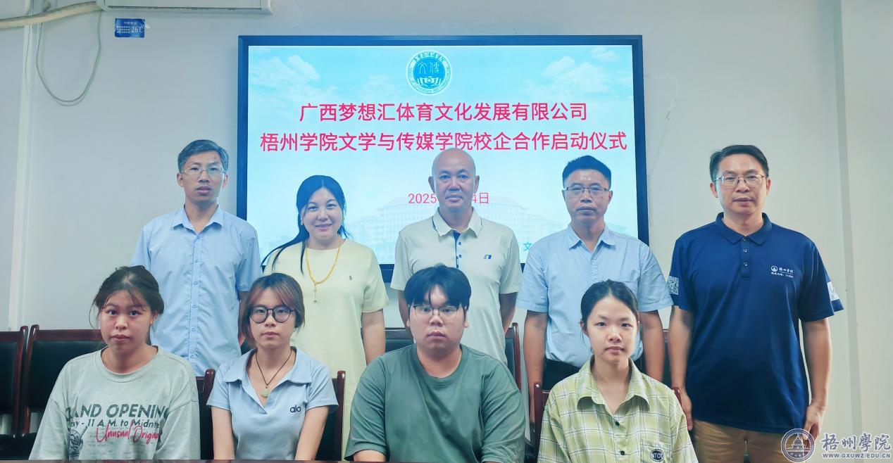7月5日上午,文学与传媒学院和广西梦想汇体育文化发展有限公司校企合作暑期实训启动仪式在明理楼M905举行,正式拉开首期实训项目工作的序幕。文学与传媒学院副院长(主持工作)段祥贵、党委副书记龚红梅、广西梦想汇体育文化发展有限公司总经理赵国雄、教师代表和实训学生代表参加。
