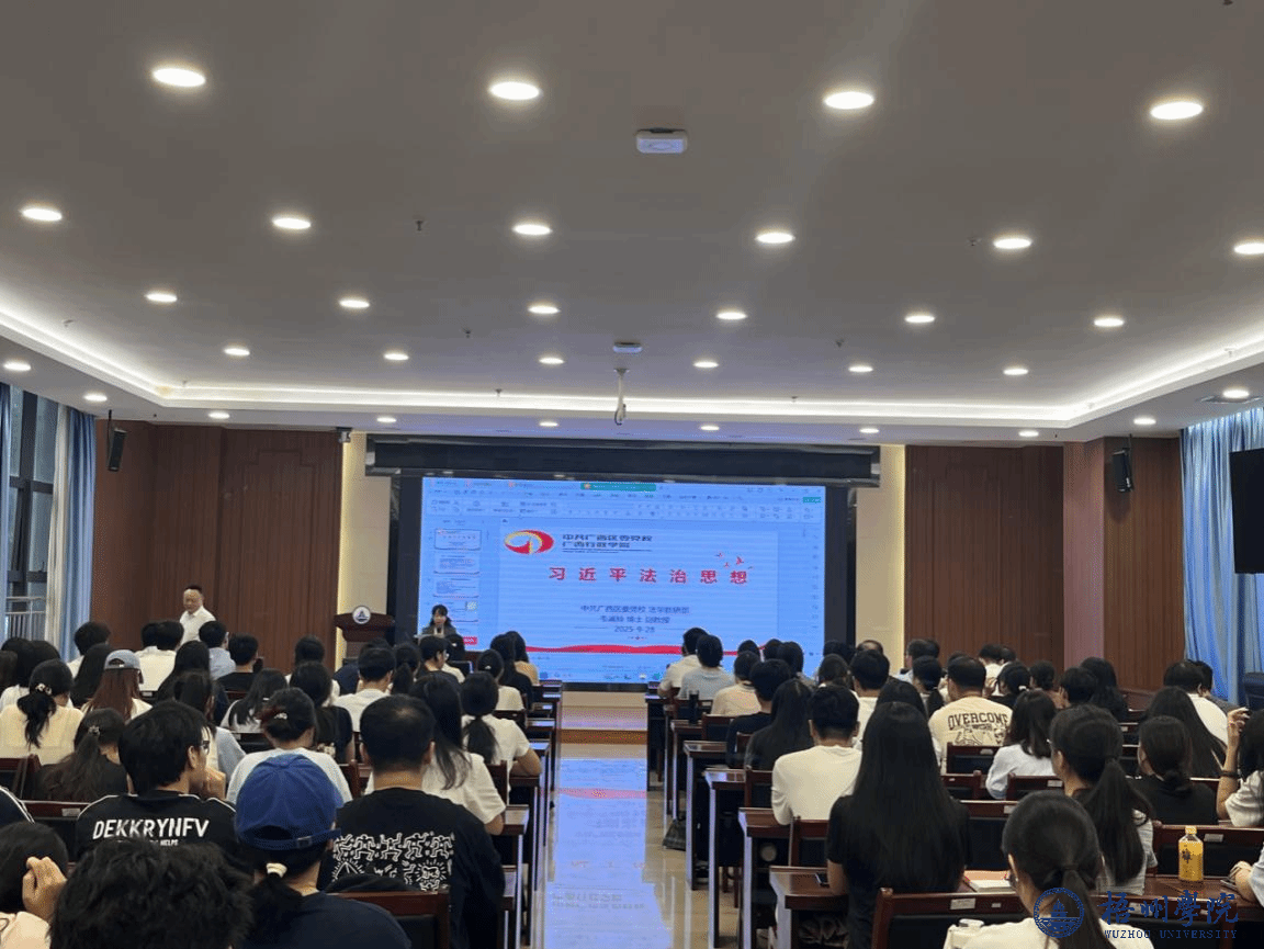 趁着自治区法学会开展的青年普法志愿者法治文化基层行暨“铸忠诚强党性”主题日活动的东风,9月28日上午,法学院法治大讲堂第24期在明科楼101报告厅成功举办。本次大讲堂特邀中共广西区委党校法学教研部副教授,法学博士韦淑玲作为主讲嘉宾,法学院院长骆庆国出席并致辞,学校相关教师代表、2024级学生参加了此次活动。