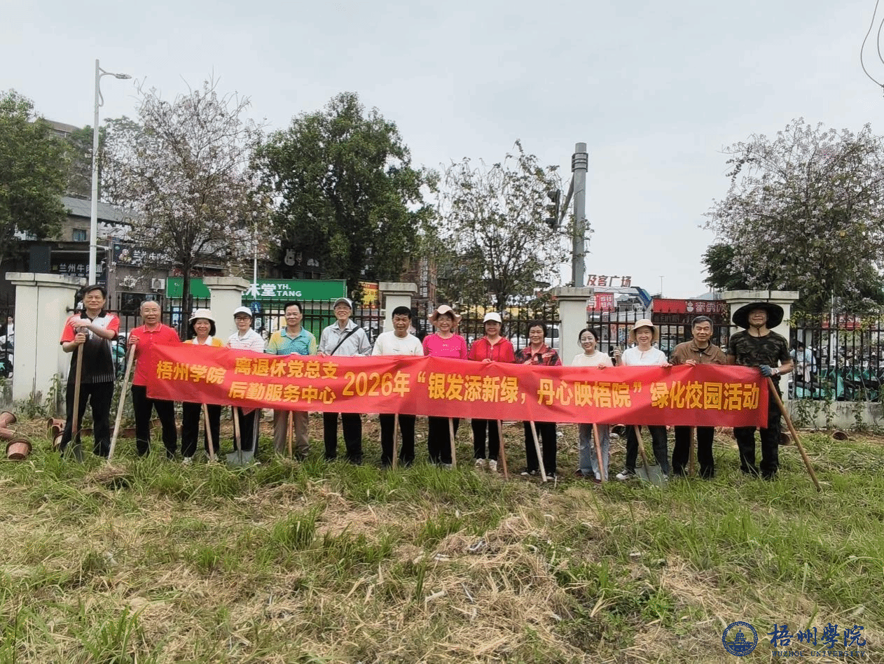 3月24日上午,离退休党总支与学校后勤服务中心在学校东大门草坪组织开展了“银发添新绿,丹心映梧院”绿化校园活动。
