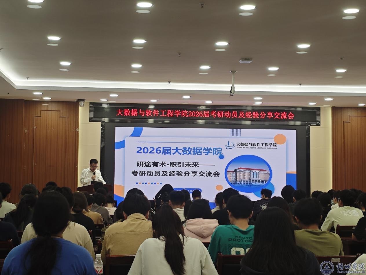 3月13日晚,大数据与软件工程学院在明科楼一楼报告厅召开2026届学生考研动员会,学院党委副书记陈春潮、教师代表以及将近200名有意向考研的2026届学生参加动员会。
