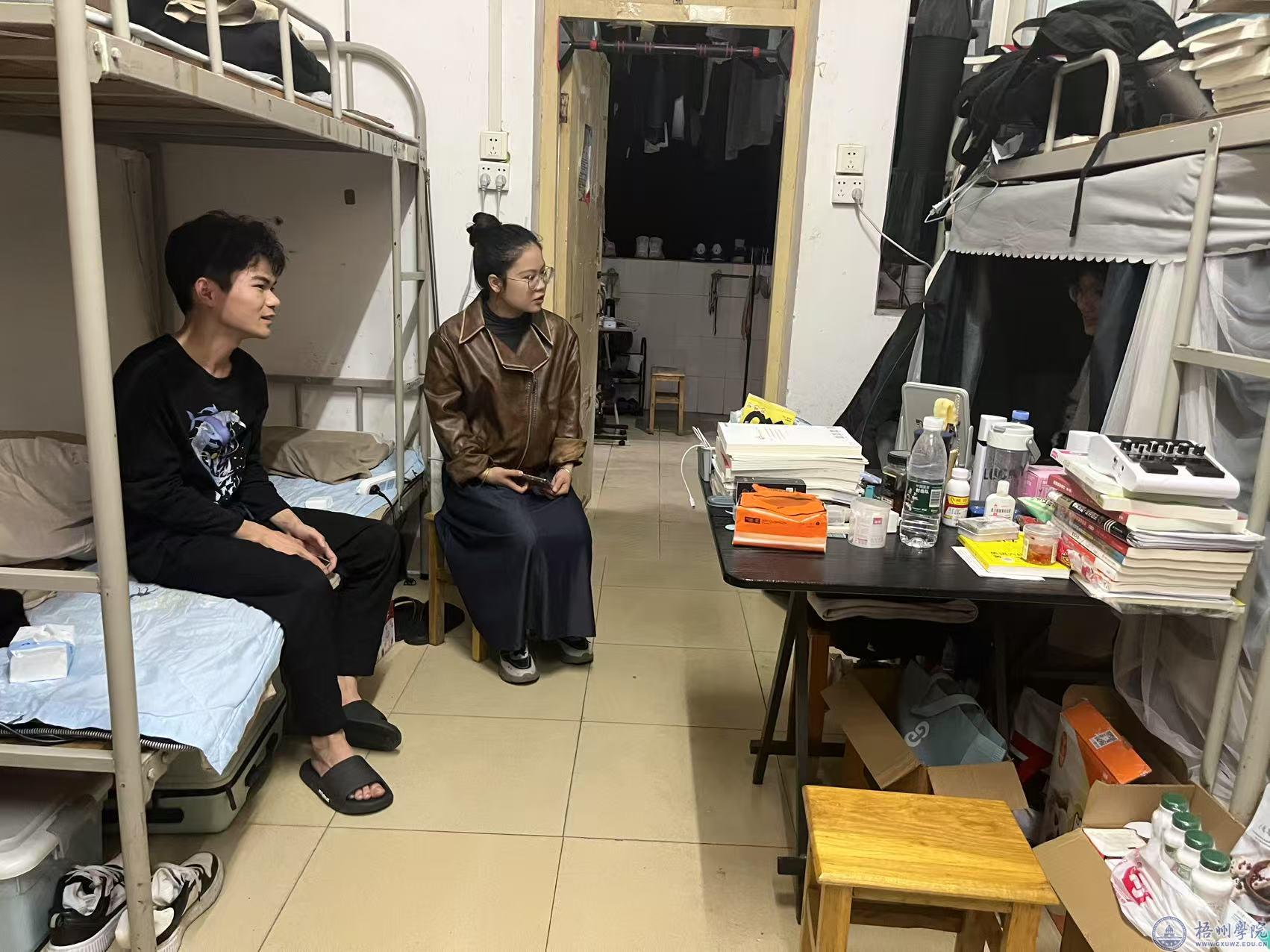 为保障学生返校后的住宿安全和了解新学期返校后的生活状态,在学院领导带领下,全体辅导员和班主任将管理触角延伸至学生生活空间,对带班学生宿舍安全隐患进行排查和内务卫生检查,同时与学生面对面交流,叮嘱学生日常生活注意事项,引导学生新学期养成积极自律的生活习惯。