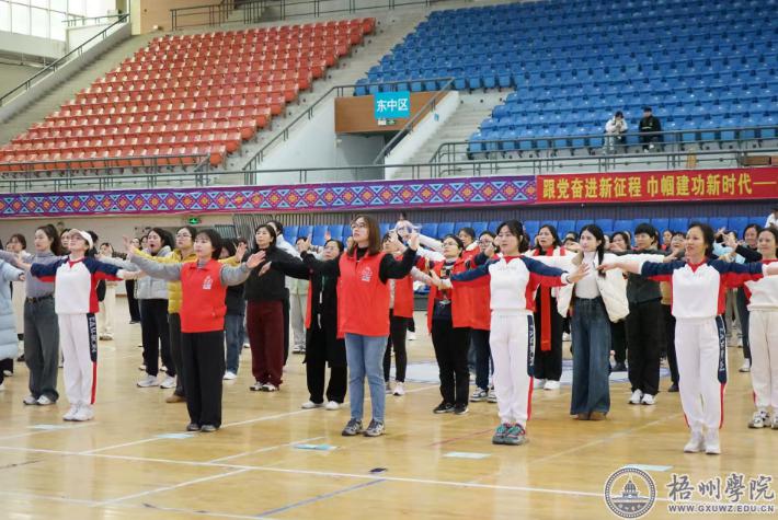 下午,广西神冠胶原生物集团有限公司的女职工们走进我校,参观了西江商贸文化博物馆与宝石文化博物馆。博物馆讲解员生动讲述文物背后的故事,让神冠集团女职工们深入领略了学校的文化底蕴。参观结束后,神冠集团女职工与学校女教职工齐聚体育馆三楼,共同参与集体健身操活动与趣味健身游园运动会。动感音乐声中,大家一同跳起啦啦操,动作整齐,精神饱满,充分展现出新时代女性积极向上、活力满满的精神风貌。在游园运动会上,投绣球、蒙眼击鼓、夹玻璃珠等趣味项目吸引了众多女职工踊跃参与,现场欢声笑语不断。