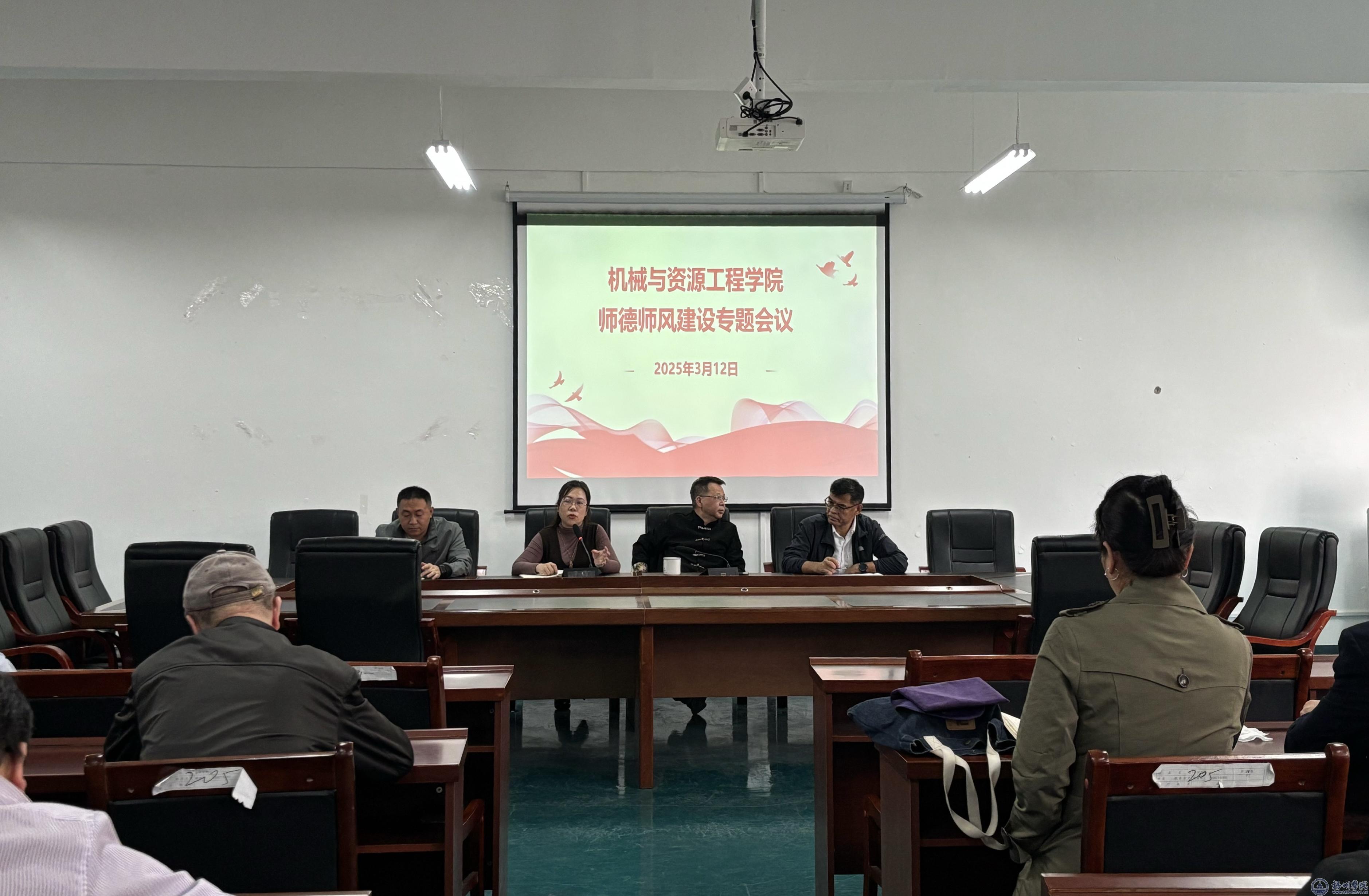 3月12日,机械与资源工程学院在学院会议室召开师德师风建设专题会议,全体教职工参会。